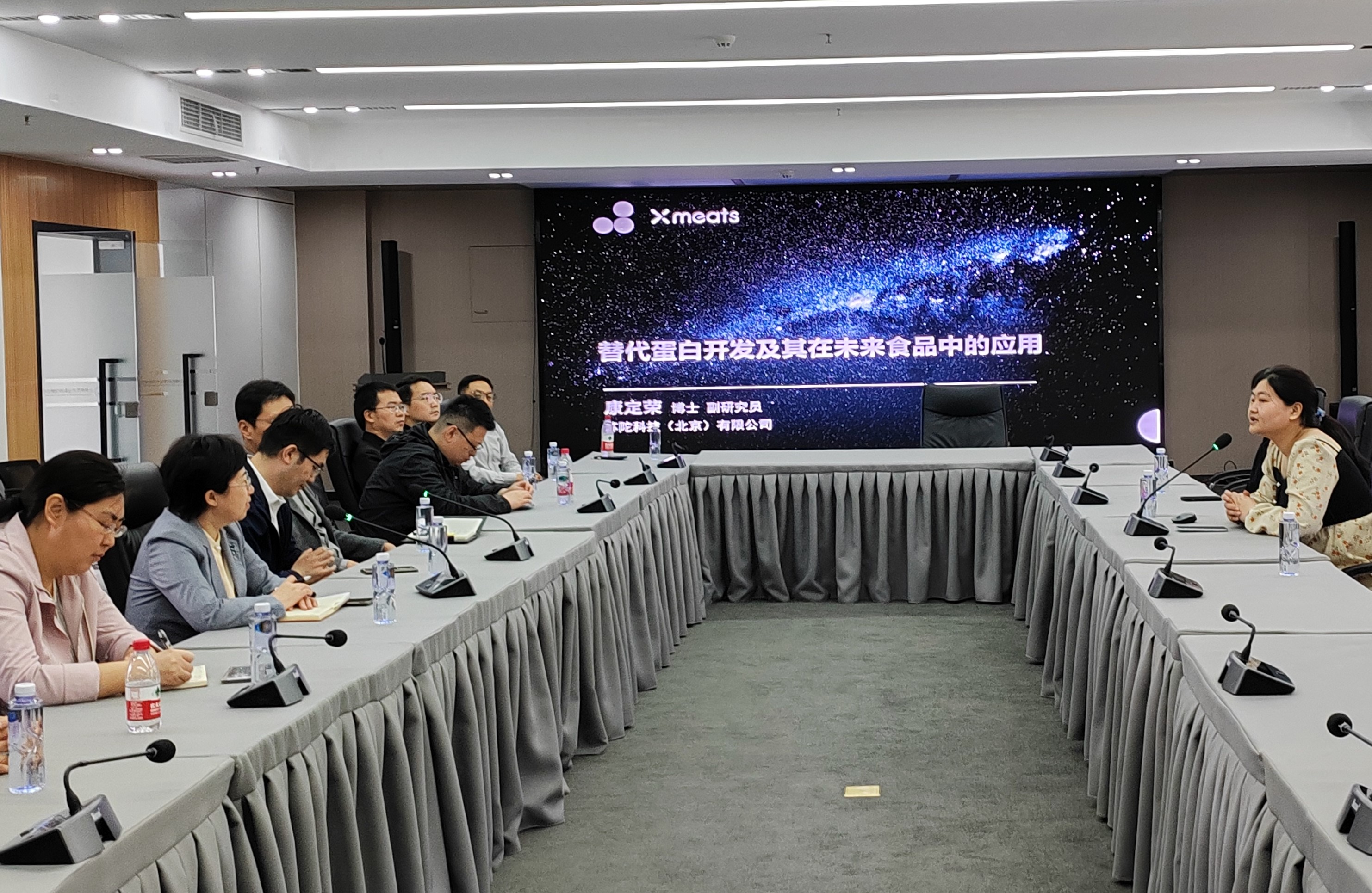 随后,调研团队前往位于园区的一家高新技术企业——苏陀科技(北京)有限公司,深入了解公司创始人博士团队留学归国创业历程以及在植物和微生物蛋白结构创新方面的最新进展。调研团与该公司研发工程师程思琪、李明瑕进行座谈,交流企业所需毕业生的专业能力要求,并探讨未来搭建员工实习与科创平台的可能性,以期为企业输送更多优秀人才。