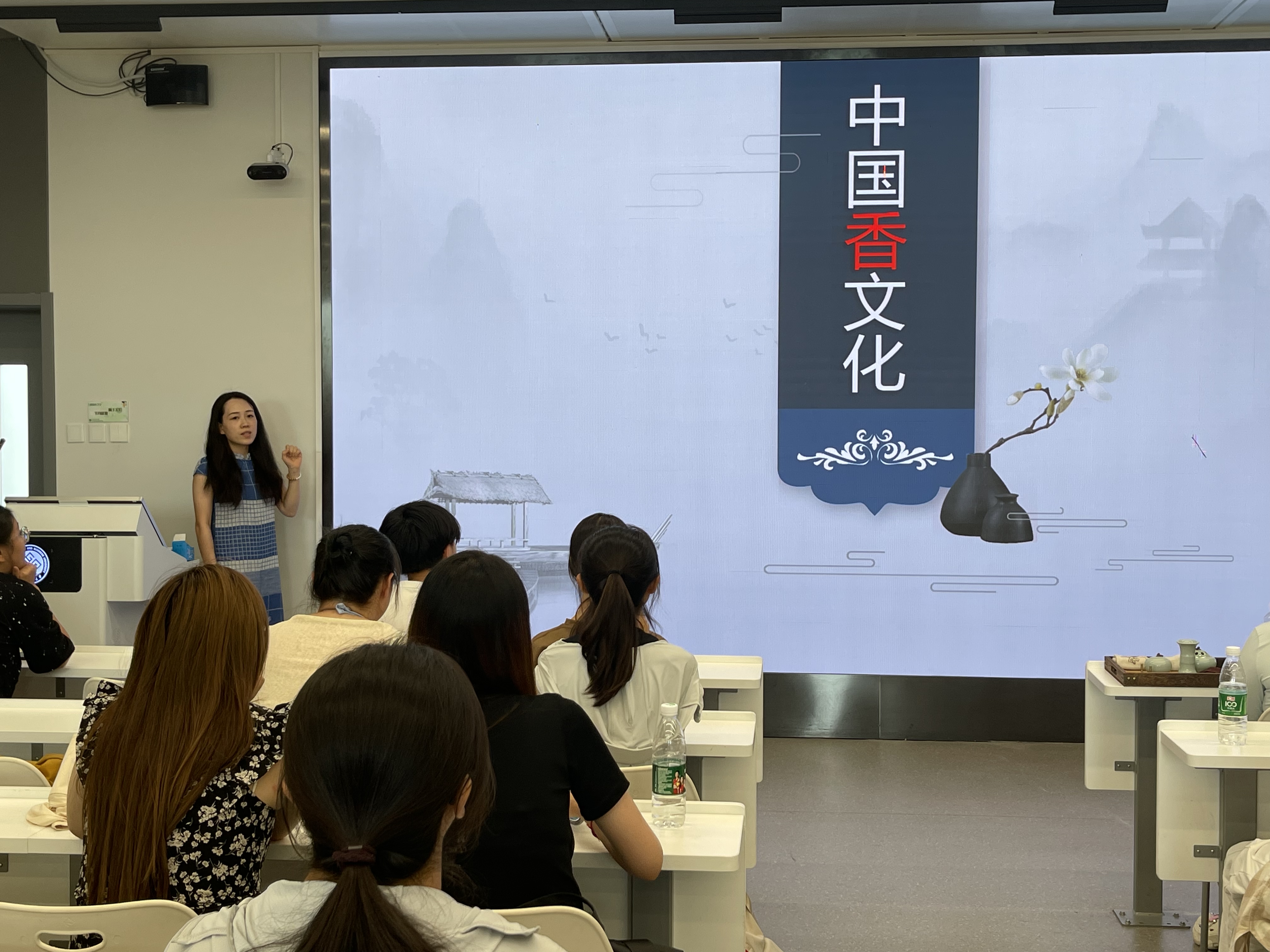 白宇辰老师介绍了中国香文化的起源、发展和演变过程。她讲到,中国香文化起始于春秋,成形于秦汉,普及于魏晋,成熟于盛唐,鼎盛于两宋,广行于明清,香的主要功用是熏衣香体、驱瘟避疫等。在香篆体验环节,老师们带领现场员工印香、薰香、品香,零距离感受制香的乐趣,感悟历史悠久的中国传统生活艺术。