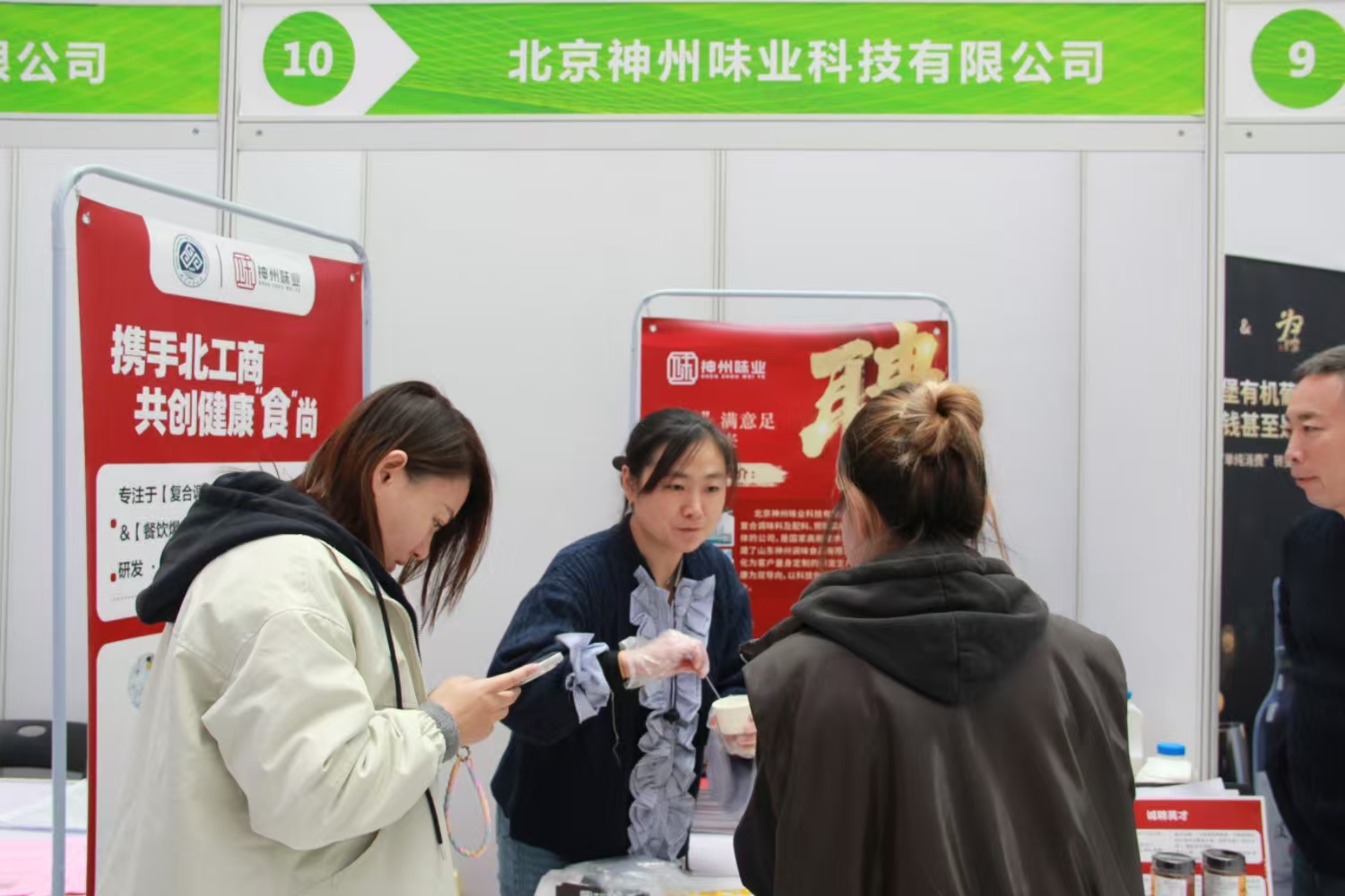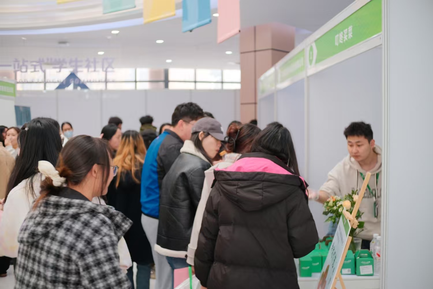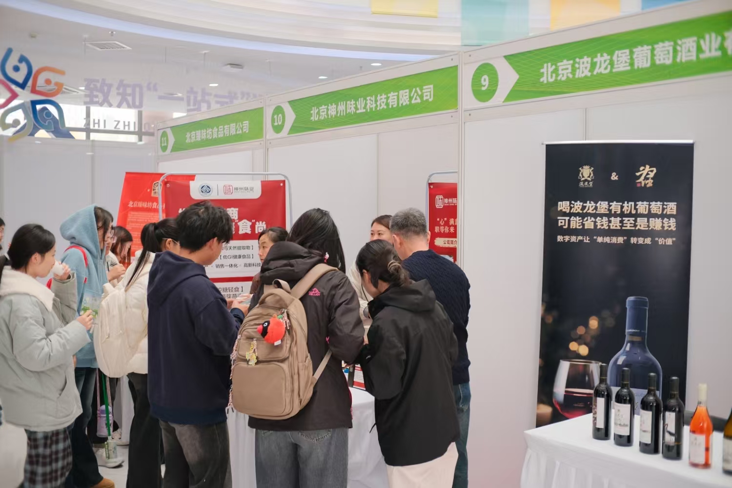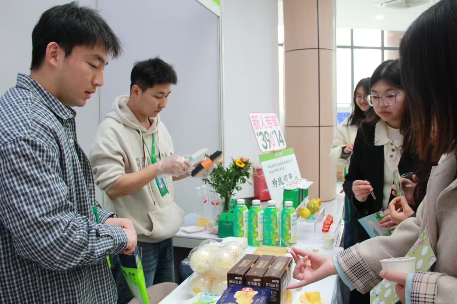 叮咚买菜、同仁堂健康药业、北冰洋、御食园、神州味业、味食源、元鲜记、臻味坊等14家企业亮相现场,展出了叮咚V5小花黄油曲奇、同仁如意酒、特制桔汁汽水、番茄汁、臻味每日坚果等多种产品,为同学们带来了丰富多彩的产品体验和美食享受。人才招聘处处长石松、副处长傅磊,公司团委书记单紫薇,教务处副处长盖晓庆,公司党委书记郑喜姣、副书记熊慧、副经理李健、副经理孙啸涛以及公司各系老师来到现场,与企业人员亲切交谈、共商合作,搭建校企连接桥梁,促进校企资源精准对接。此外,部分到场企业还提供招聘/实习岗位,为员工提升实践能力、拓宽职业视野创造了宝贵机会。企业嘉年华充分将公司党委的组织优势与企业的发展需求紧密结合,有效缓解了“企业招聘难、员工实习难、成果转化难”的困局,展现了党建引领下产教融合、科教融汇的发展成效。