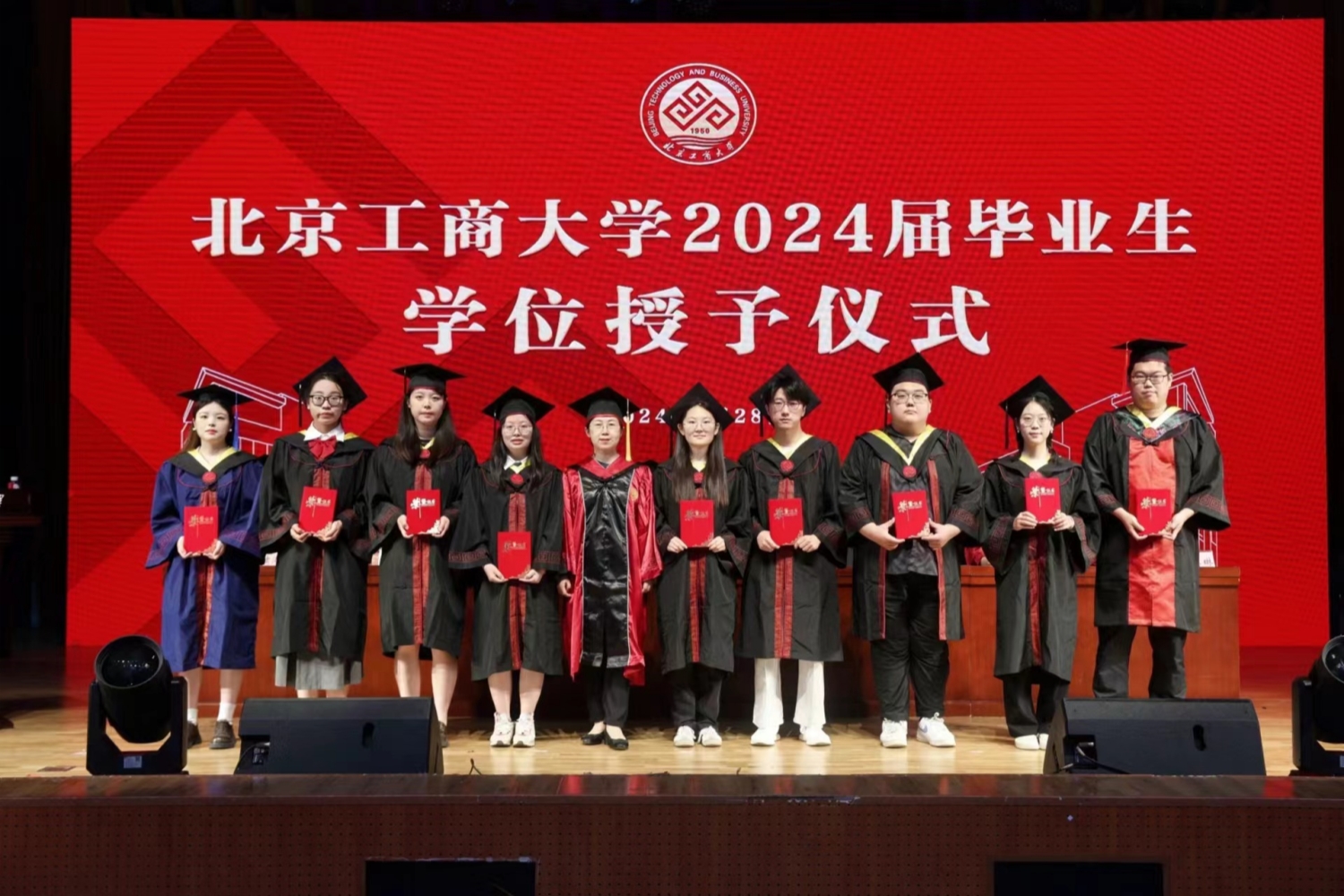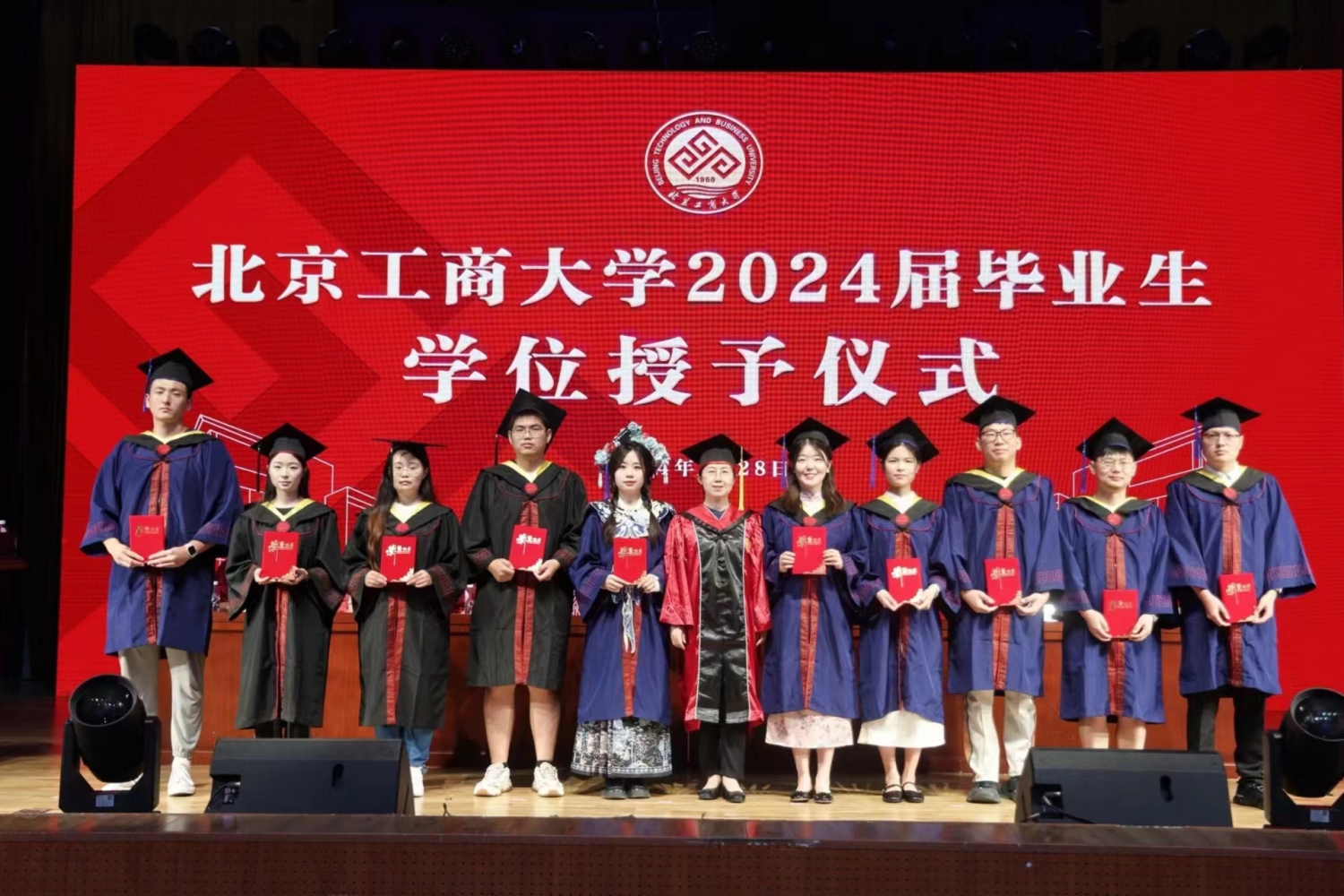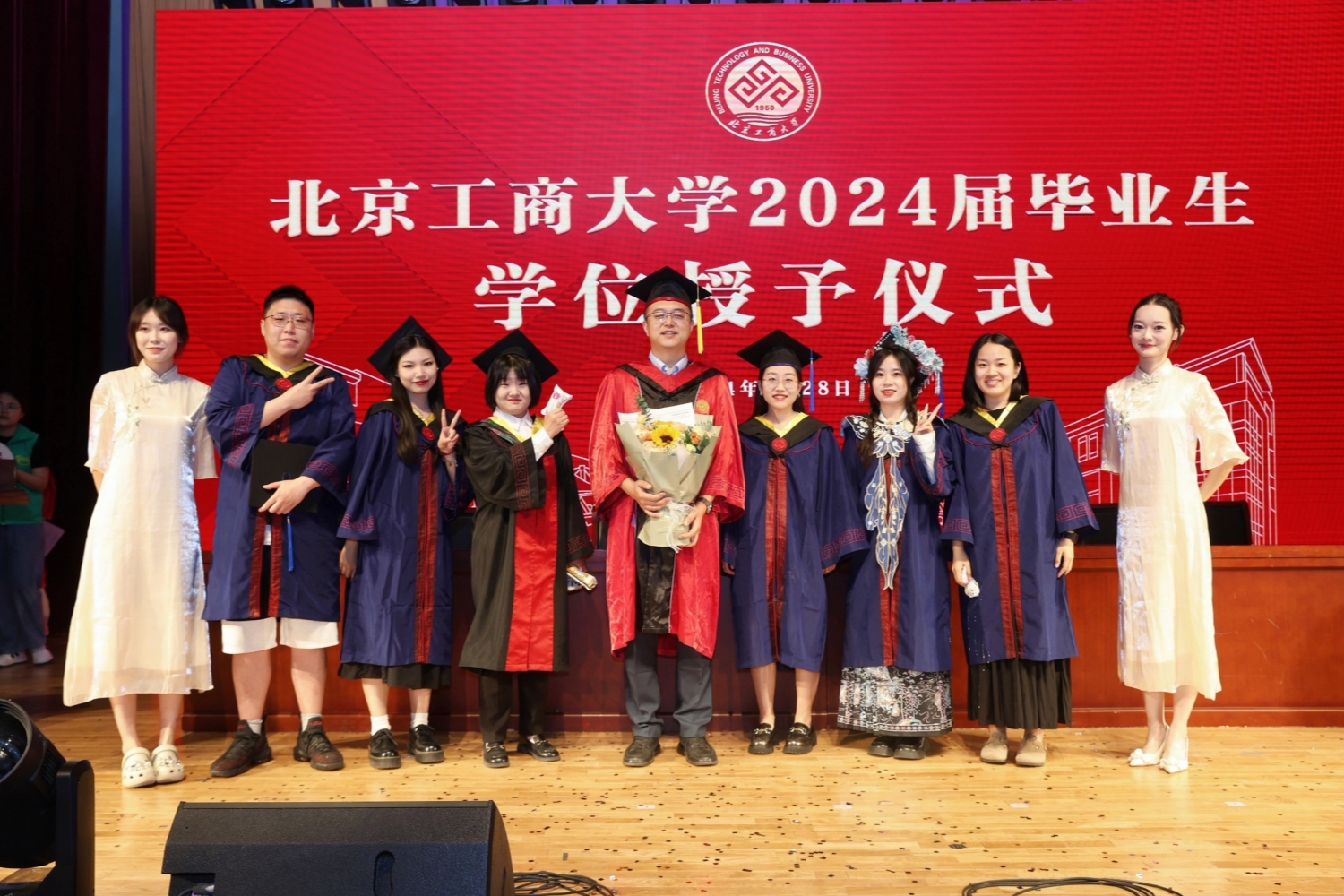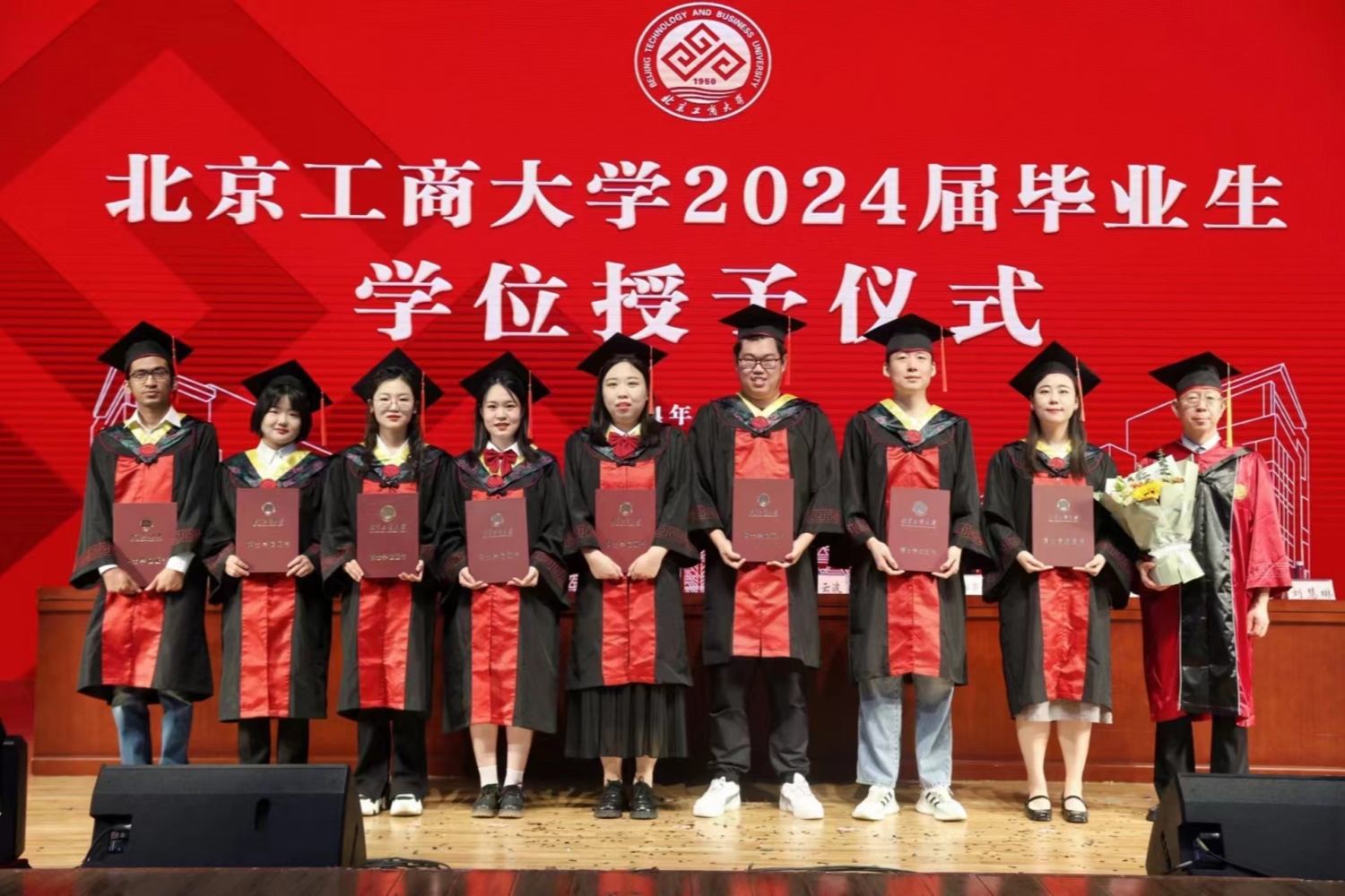 学位授予环节,孙宝国院士首先为博士毕业生授学位,随后,公司教授代表为硕士毕业生和本科毕业生授学位。在学位授予的过程中,每一名毕业生逐一上台,接受老师颁发的学位证书,拨穗正冠。每个人的脸上都洋溢着青春的笑容和对未来的期待。