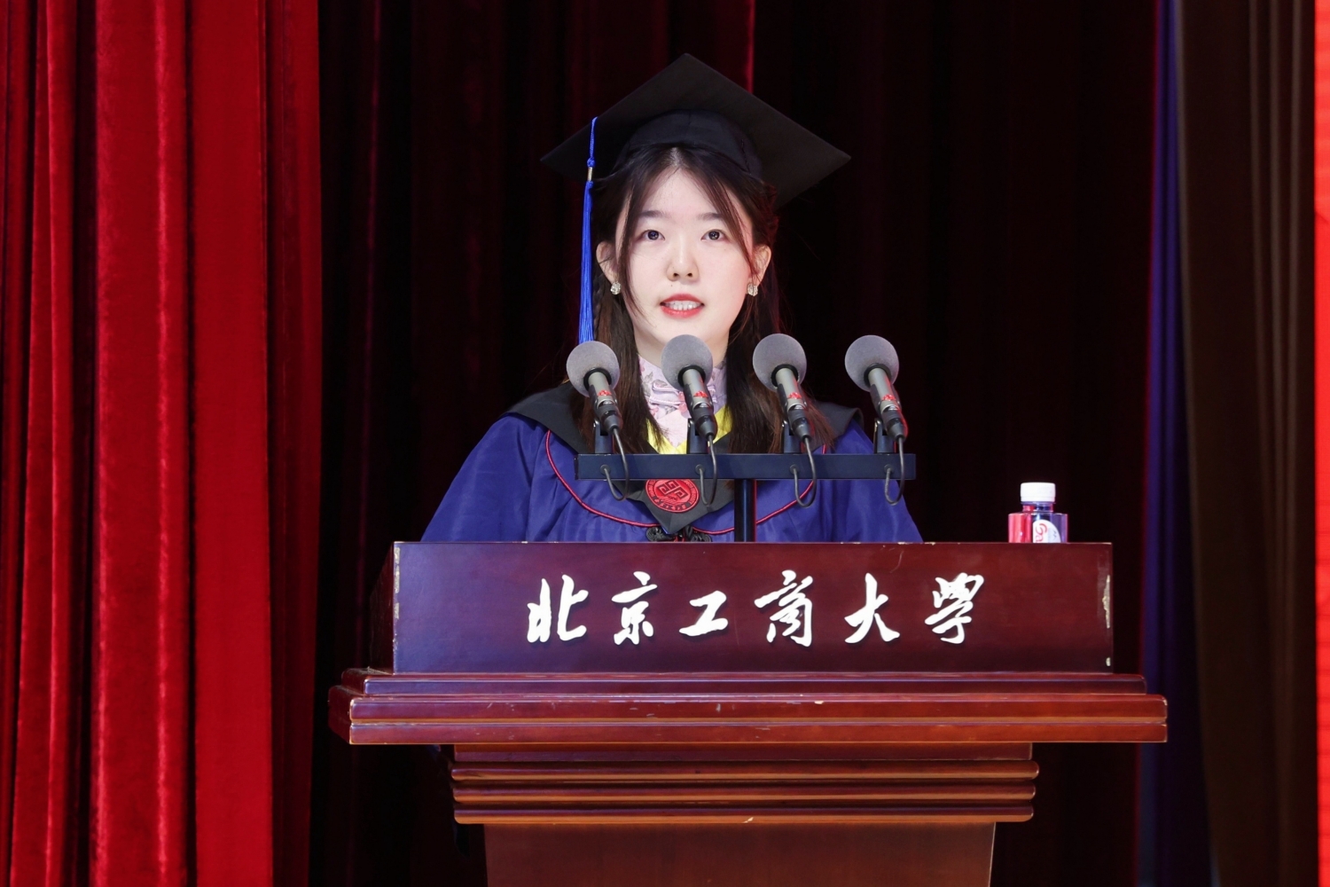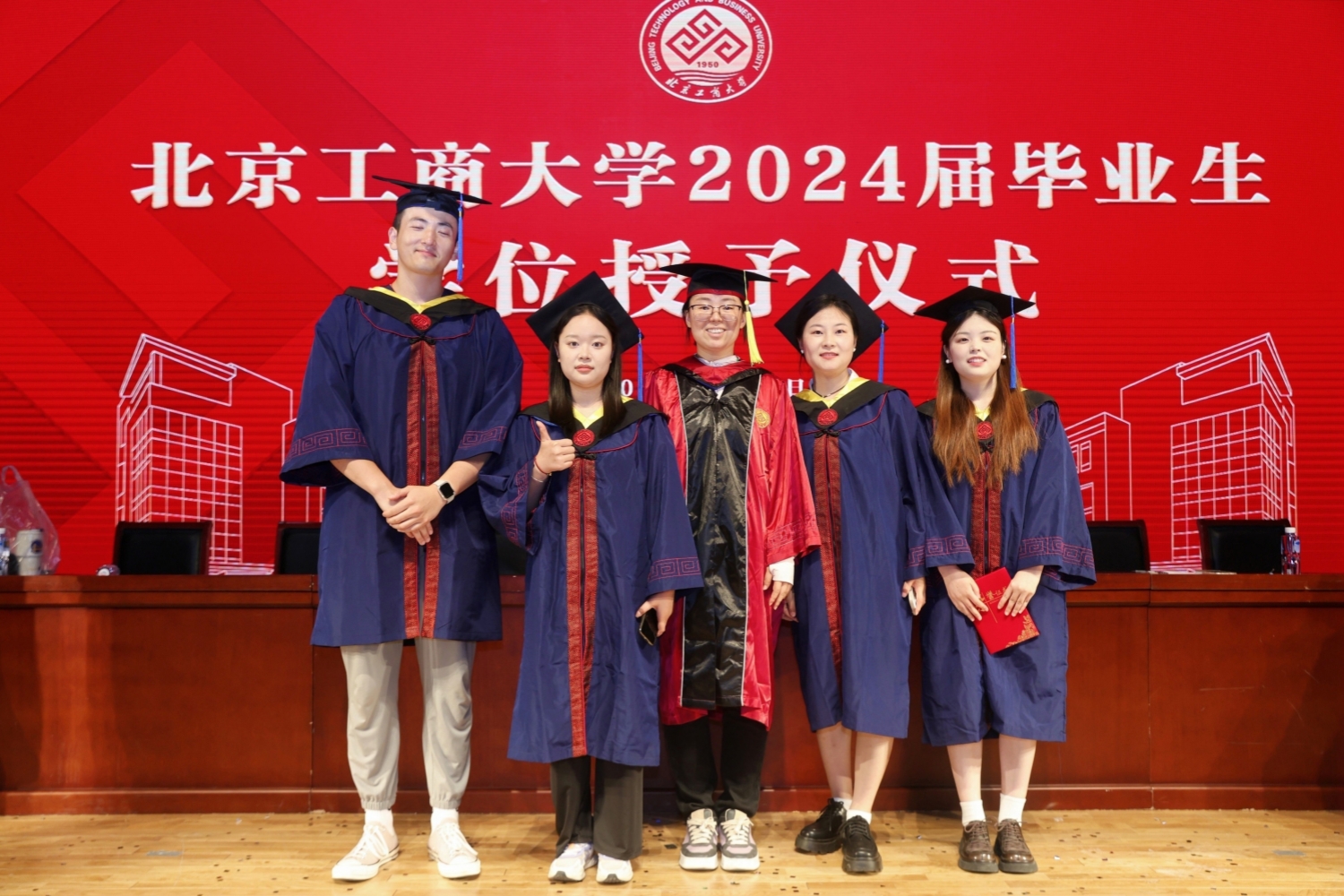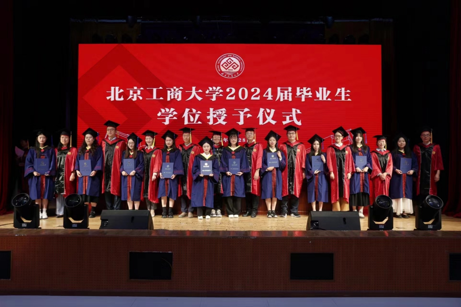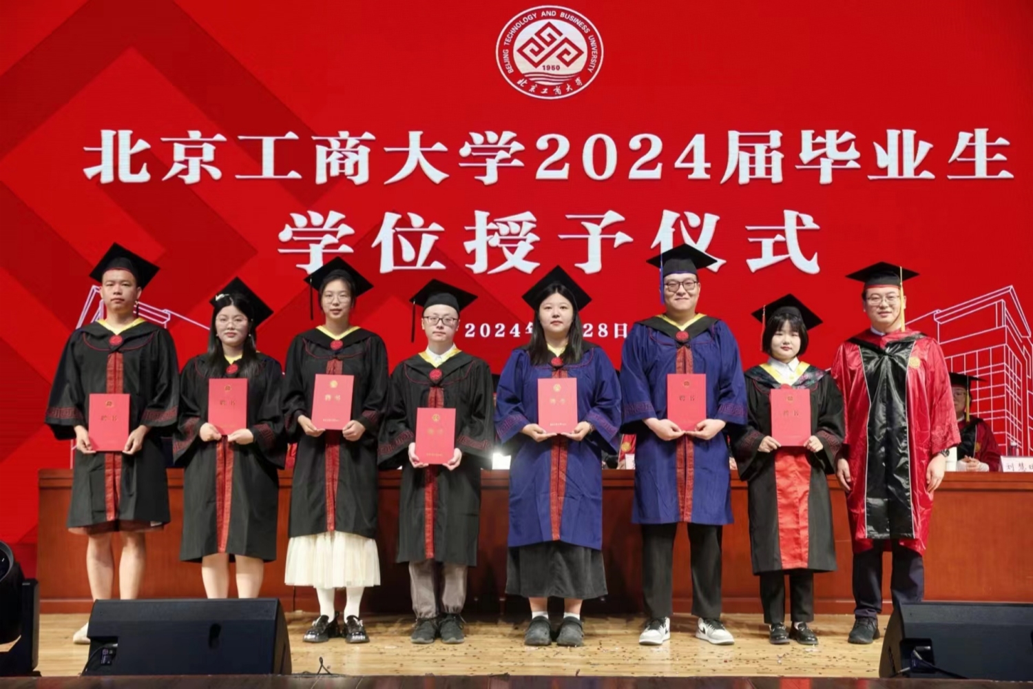 学位授予环节,孙宝国院士首先为博士毕业生授学位,随后,公司教授代表为硕士毕业生和本科毕业生授学位。在学位授予的过程中,每一名毕业生逐一上台,接受老师颁发的学位证书,拨穗正冠。每个人的脸上都洋溢着青春的笑容和对未来的期待。