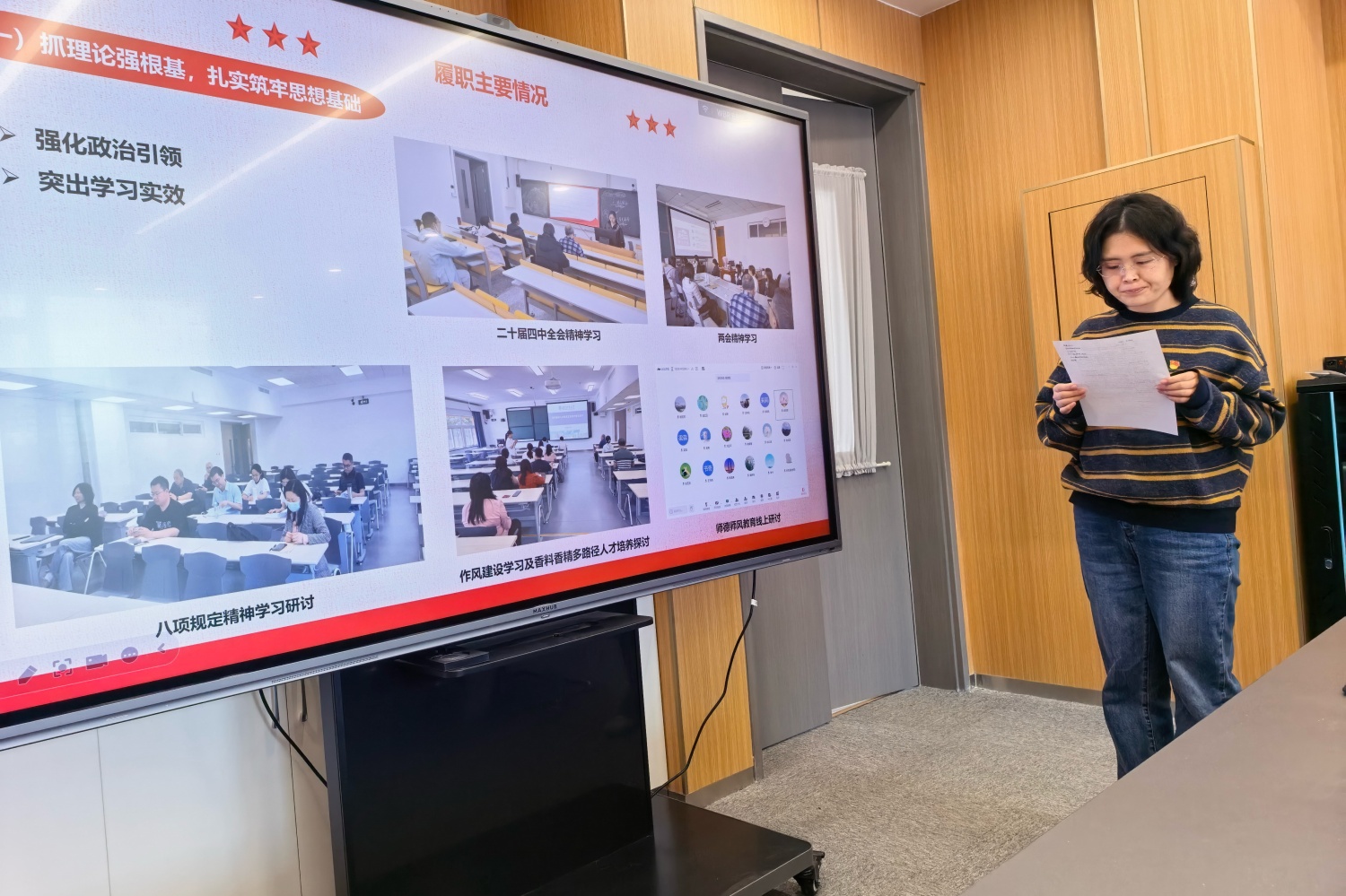 此次考核采取现场述职与书面述职相结合的方式进行。会上,8位党支部书记依次进行现场述职,紧密围绕第一责任人职责,系统梳理了过去一年在政治理论学习、特色活动开展、教学科研成果等方面的工作成效,深刻剖析了存在的问题与不足,并明确了下一步的改进方向与工作计划。
