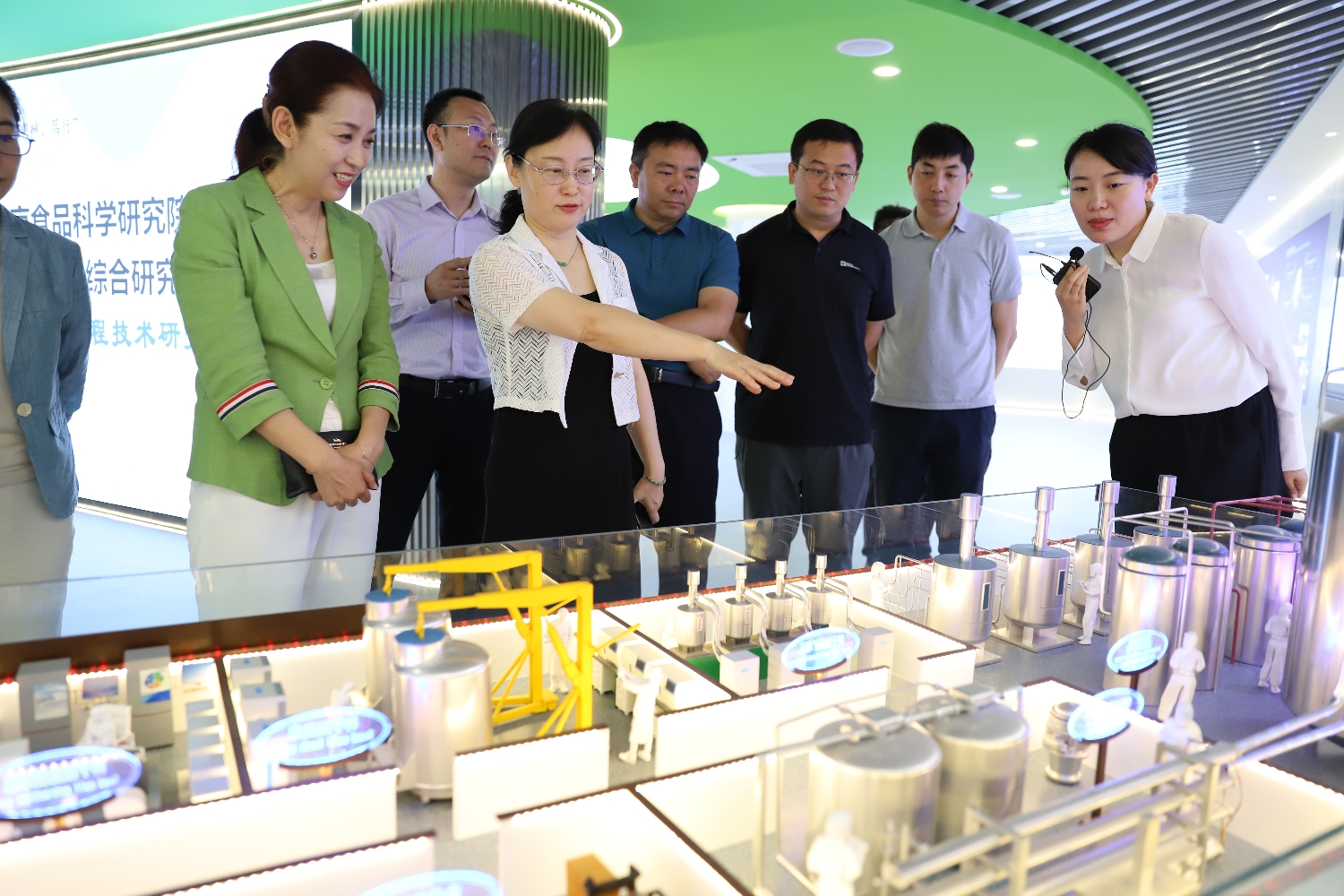 在北京食品科公司研究院经理、党委副书记赵燕的陪同下,徐丹丹一行实地参观了食科院科技展厅与工作场所,详细了解研究院的发展历程、文化建设及成果转化情况,详细了解研究院的产品研发及人才需求。