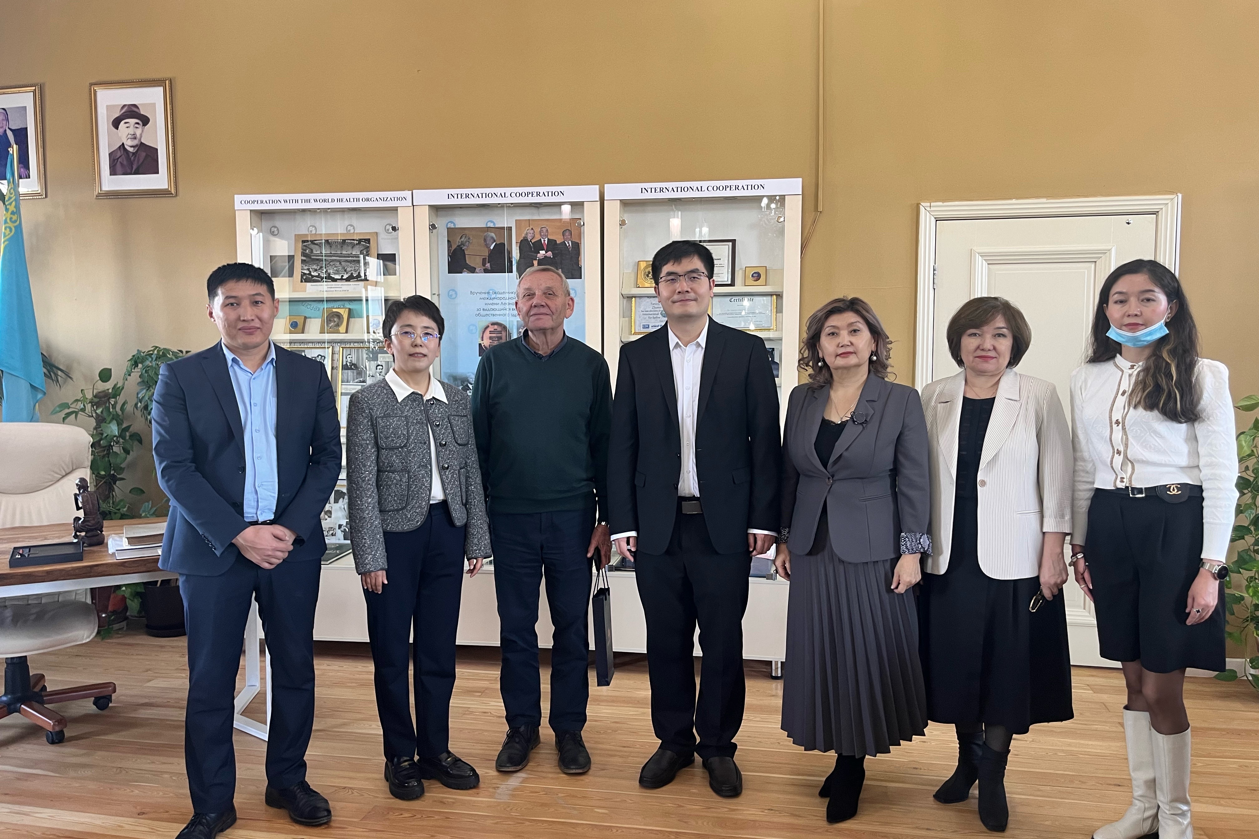 在哈萨克斯坦营养研究院访问期间,经理阿尔马兹·沙尔曼(Almaz Sharman)教授详细介绍了哈萨克斯坦国家科公司院士、苏联医学科公司院士、哈萨克斯坦营养公司原经理托热格雷德·沙尔马诺夫(Toregeldy Sharmanov)生平展览馆。