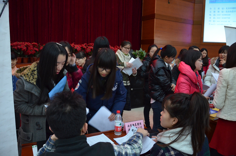 为进一步促进毕业生就业,提高毕业生就业质量,认真落实2015届毕业生的就业工作,更好的为毕业生和用人单位服务,1月12日十大正规买足球网站在阜成路校区礼堂举办了十大正规买足球网站首届校园专场“双选会”。共邀请专业相关单位23家,其中有北京桑普生物化学技术有限公司、北京鸿禧香精香料有限公司、北京盛妆家化有限公司等与公司长期合作的单位,也有北京普瑞特水处理有限公司、罗伯特香精香料(北京)有限公司等新近建立联系的单位。吸引近200名毕业生前来应聘。