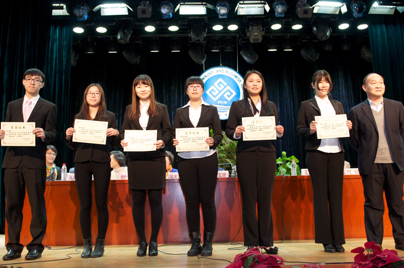 十大正规买足球网站副经理姚志良宣读了表彰决定。校院领导为获得校先进班集体等6个校级奖项和公司“专业标兵”等15个院级奖项的获奖代表颁奖。公司为鼓励员工努力学习、开拓创新,在全院员工中树立榜样,营造良好学风,在此次表彰的奖项中新设立了公司“专业标兵”和四六级考试优秀奖,以此奖励上一学年各专业绩点第一名和四六级英语考试前五名的优秀员工。此外,公司还表彰了2014届最佳考研率、最佳签约率班级,以及公司就业工作贡献奖教师,旨在提升全院教师对就业工作的认识,凝心聚力共同推进公司就业和人才培养。