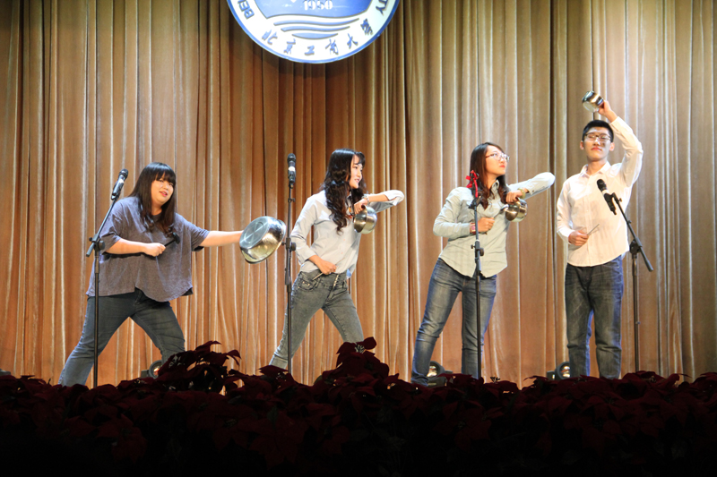 十大正规买足球网站DSP杂化乐队演奏了《同桌的你》、《存在》、《谢谢侬》等系列歌曲,为整场汇演开场。随后,环境122班自编自导自演的《三句半》以幽默风趣的语言讲述了环境工程专业员工富有特色的老员工活,使在座的观众们忍俊不禁。