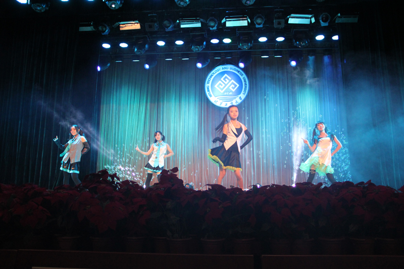 歌曲《舍不得》、对唱《Tonight I feel close to you》分别由刘骄慧和刘杨、尹奇双亲情演唱。动人的旋律传达出员工们对于浓浓的师生情谊、珍贵的同窗友情,以及美好的校园爱恋的歌颂。作为新生,时跃同学第一次在公司的大舞台上进行表演,为在场观众们弹唱了一曲《喜欢你》,赢得阵阵掌声。绚烂的灯光、动感的舞姿,来自环境132班徐娴等三位女生跳的热舞——《Lamb》,该节目与环境122班张鑫带来的街舞Poping交相呼应,引爆了整个舞台。而后,环境132班马晓欢等四人的初音舞蹈——《快乐合成器》,使得演出现场即刻刮起了一阵“活力可爱风”。