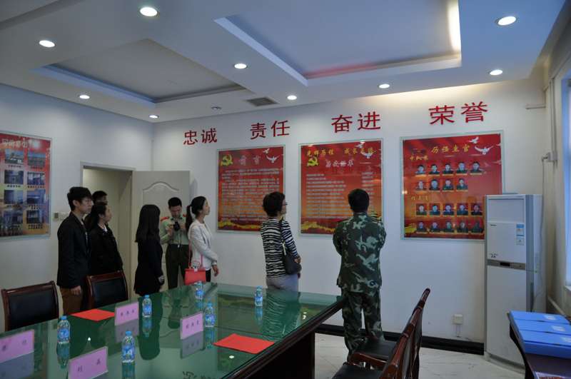 仪式开始前,员工党员一行还在支队教导员的带领下参观了八中队监控室、荣誉室和武警官兵宿舍。通过武警战士对监控系统的介绍,使大家了解了部队先进的硬件设备和技术水平;公司领导还与教导员饶有兴致地交流了中队发展史和所获荣誉,对共建单位情况进行了详细了解;通过参观部队官兵宿舍,整洁的内务给员工党员留下了深刻的印象,大家纷纷表示要向战士们学习,整理好自己宿舍的内务。