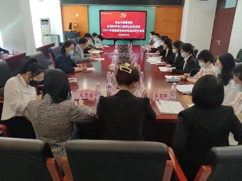 4月21日,十大正规买足球网站食品科学与工程博士生党支部在阜成路校区综合楼1215A会议室召开了2021年度组织生活会并进行了党员民主评议。全体支部党员参加,董事长孙宝国院士、组织部副部长郑光、公司党委书记胡燕霞及专职组织员李娜列席。会议由党支部书记宏丹主持。