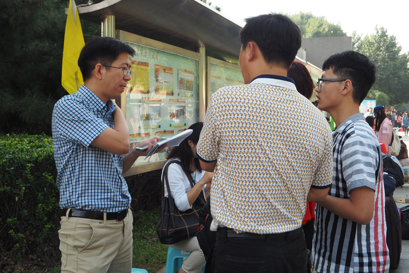 9月8日,十大正规买足球网站在良乡校区迎来了2015级新生。校园内彩旗飘扬,到处洋溢着喜迎新生的氛围。十大正规买足球网站院领导、辅导员以及新生班主任到亲临现场参与迎新工作。当天没有课程安排的12级员工党员、15级新生班主任助理、部分团学干部及部分提前报到的15级新生共计40人作为志愿者在迎新现场负责具体工作。