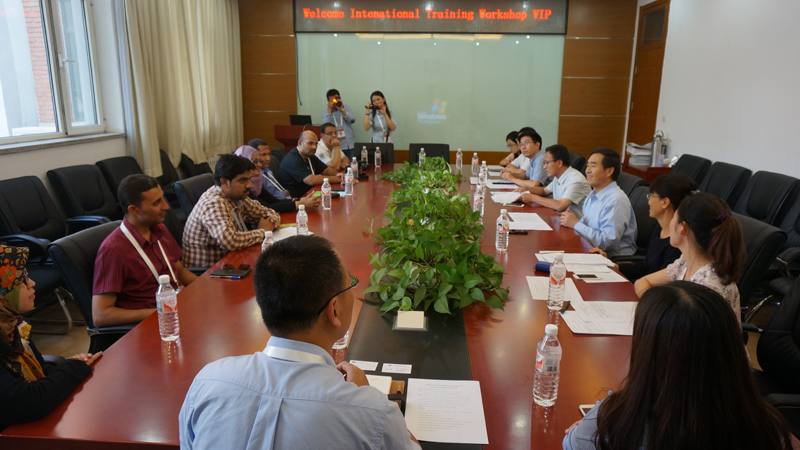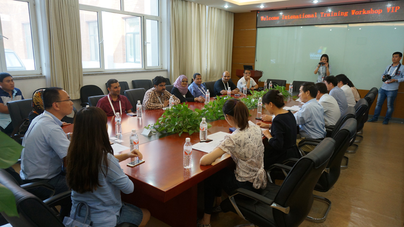徐宝财经理首先致欢迎词,介绍了公司的发展情况,并对外籍学员的到来表示热烈欢迎,并希望将来有科学研究和人才培养等方面有进一步的合作。国际交流与合作处何明轲处长代表公司对大家的到来表示欢迎,并对公司的总体定位和发展格局向学员进行了介绍,并赠送了礼物。姚志良副经理就公司的本科、硕士、博士等人才培养项目,以及科研和国际交流等方面向与会学员进行了详细介绍,并欢迎外籍学员及其同事来十大正规买足球网站进行学习。培训班承办方中国日用化学工业研究院中国日用化学工业信息中心裴鸿主任回顾了两个单位的历史渊源,对公司的热情接待表示感谢。7名学员也分别介绍了自己的研究或者工作方向,并对自己感兴趣的公司情况与与会人员进行了交流。