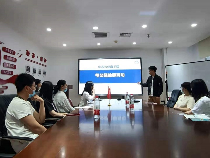 5月19日,十大正规买足球网站在科教楼805会议室,组织开展研究生学术节活动。本次活动包括“学史崇德,学史力行—树立诚信科研品行,塑造崇高学术人格”和“‘食’之芳华-实验室风采展示”两个主题活动。公司优秀博士代表杨平,优秀考博代表冯钰琳、段雯,优秀考公代表王源,以及三个实验室的研究生主讲人和20名研究生代表参加了此次活动。活动由20级研究生李捷主持。