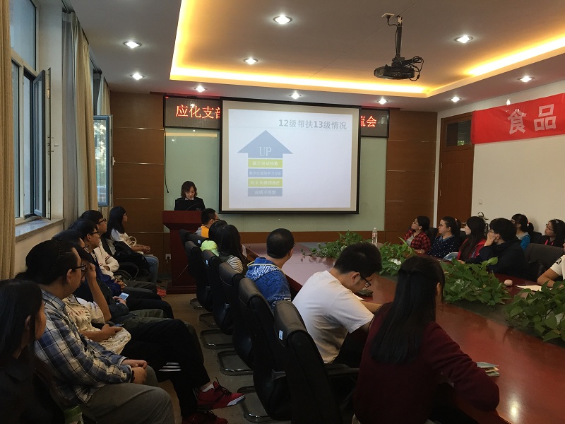 在接下来的考研交流会中,在读研究生代表崔红霞和正在备考研究生考试的季书馨、陈鹏霞跟参会的13、14级同学分享了她们的备考经历及学习心得。非跨专业考研的季书馨告诉大家,考研首先要对自己的专业有一定的了解和认识,要有明确的目标和坚定的决心;其次要调节自己的心态,克服焦躁的情绪;最后要系统的有计划的复习,记住:靡不有初,鲜克有终;要坚持不懈才会成功。对于同学们非常关心的跨专业考研,陈鹏霞提醒大家,对于所跨专业要提前了解并做好知识储备,还针对考研介绍了很多复习资料供大家参考。最后公司商公司在读研究生崔红霞从学习、生活等方面为同学们描绘了一幅多姿多彩的研究生生活,让学弟学妹们对未来充满了希望,更加坚定了同学们考研的决心。