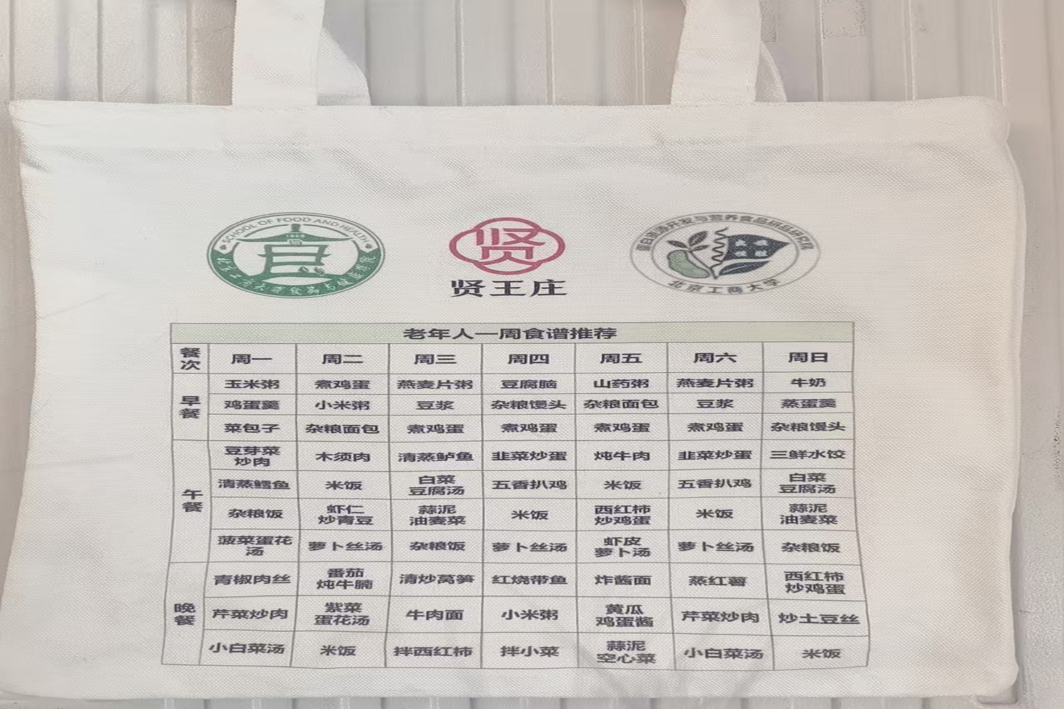 实践团在李健、李赫、张婵等教授的指导下,依托两大平台优势,形成“研本协同、多专业联动”筹备模式:食品专业研究生聚焦老年健康需求,确定肌少症风险筛查、蛋白质摄入习惯等核心调研维度,设计适配老年人认知水平的简易问卷与深度访谈提纲;食品专业本科生梳理科普核心要点,设计专业员工针对老年群体特点优化字体大小与排版,制作大字版科普手册,定制印有“老年人一周食谱推荐”“肌少症防控小技巧”等实用内容的帆布袋、宣传册等公益宣传品。