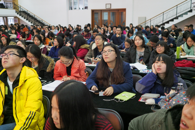 首先,党总支副书记胡燕霞向同学们介绍了刘滨学长以及目前严峻的就业形势。她表示,就业大环境一年比一年严峻,就业压力逐年增加,希望同学们秉承着对自己负责的态度,以认真积极的心态面对就业,积极开发身边的就业资源,把握机会。