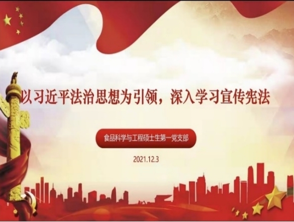 食品工程硕士生第二党支部:党支部组织观看了“宪法晨读”活动,深深感受到了宪法的尊严。通过学习发现只有不断地学习宪法、尊崇宪法,大力弘扬宪法精神,才能更好发挥宪法在新时代推进全面依法治国、推进国家治理体系和治理能力现代化中的国家根本法作用,让宪法为中华民族伟大复兴的中国梦保驾护航。要以实际行动学习宣传贯彻好宪法,要成为一名遵纪守法的合格公民,尊重法律、敬畏法律、遵守法律,增强宪法意识,弘扬宪法精神,为法制建设作出新的贡献。