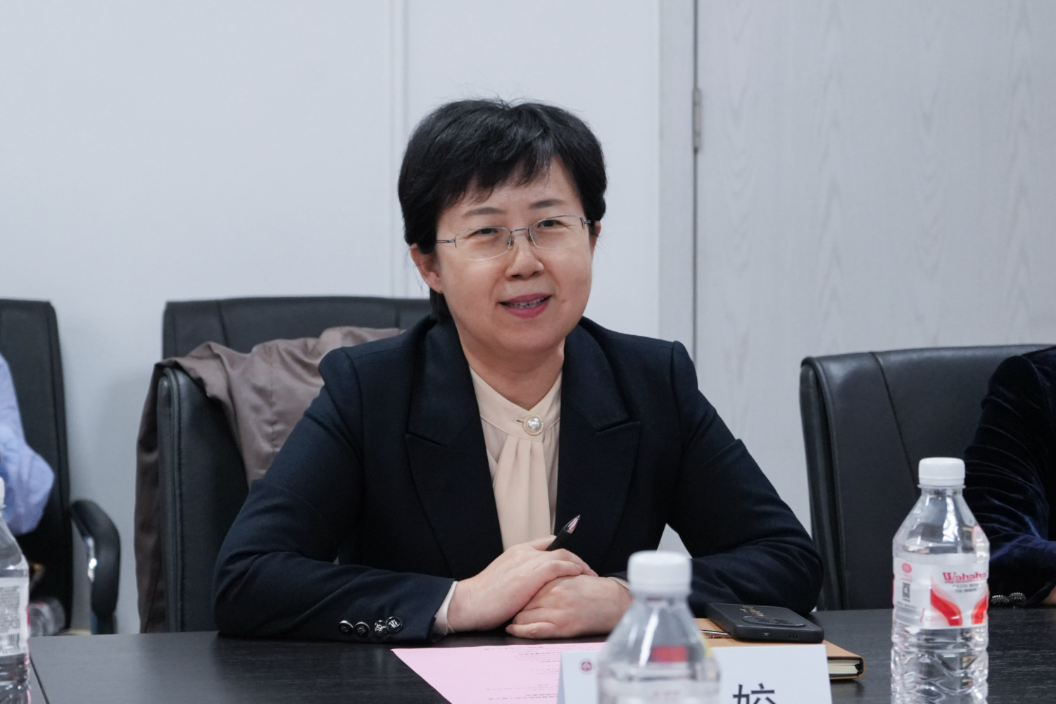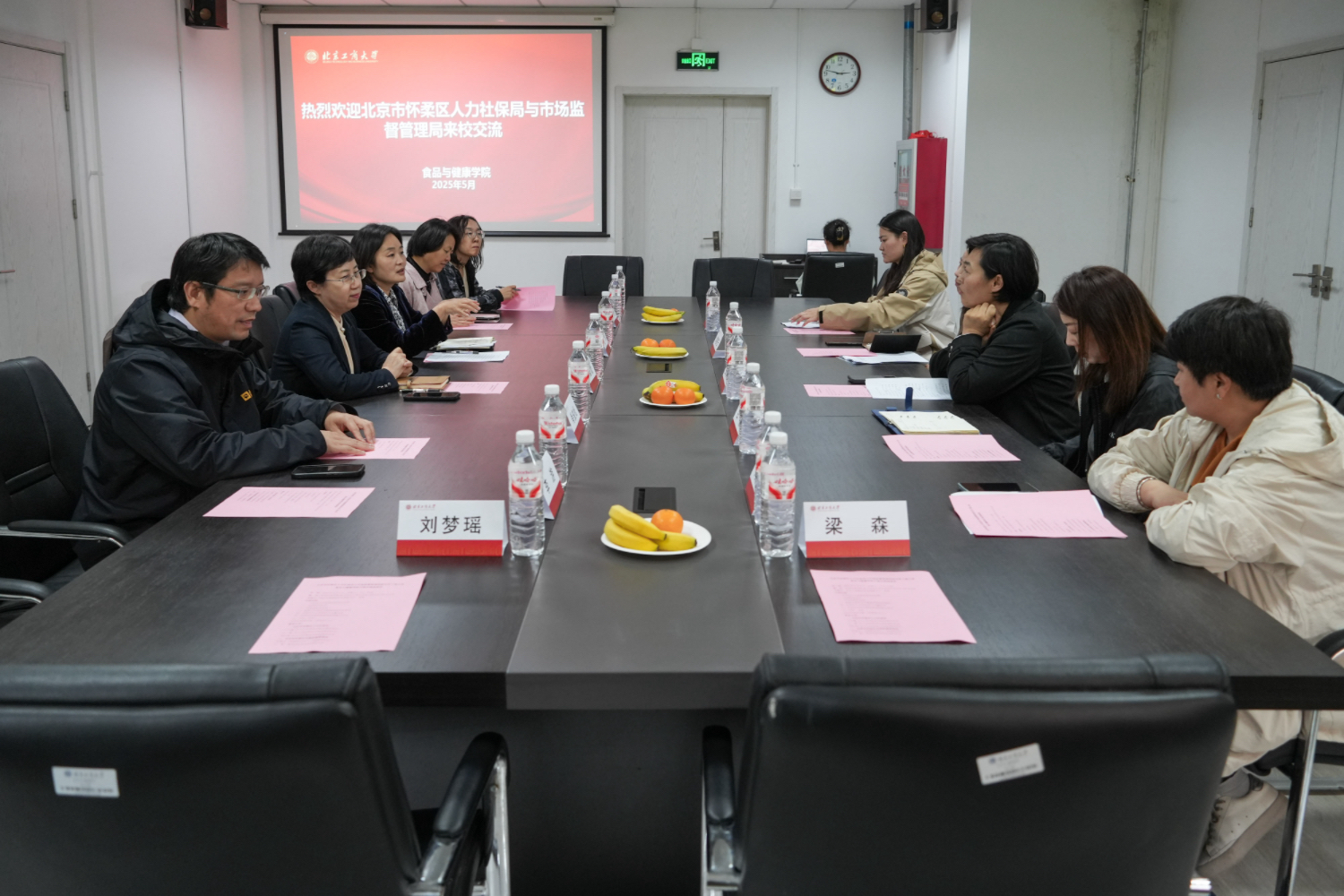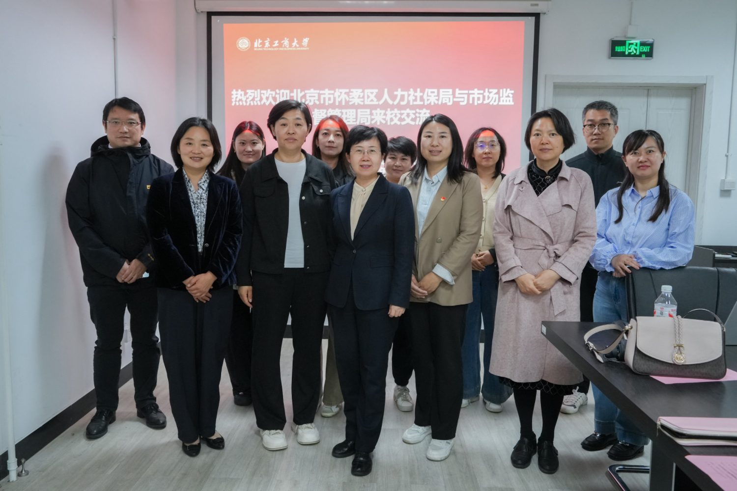 刘晶热烈欢迎怀柔区人力社保局和市场监督管理局的来访,就怀柔区政府对公司就业工作的支持表示了感谢,介绍了公司“工商一体化,奋进双一流”的办学目标任务,希望今后可以和怀柔区政府加强交流合作,密切对接企业岗位需求,实现资源联享。
