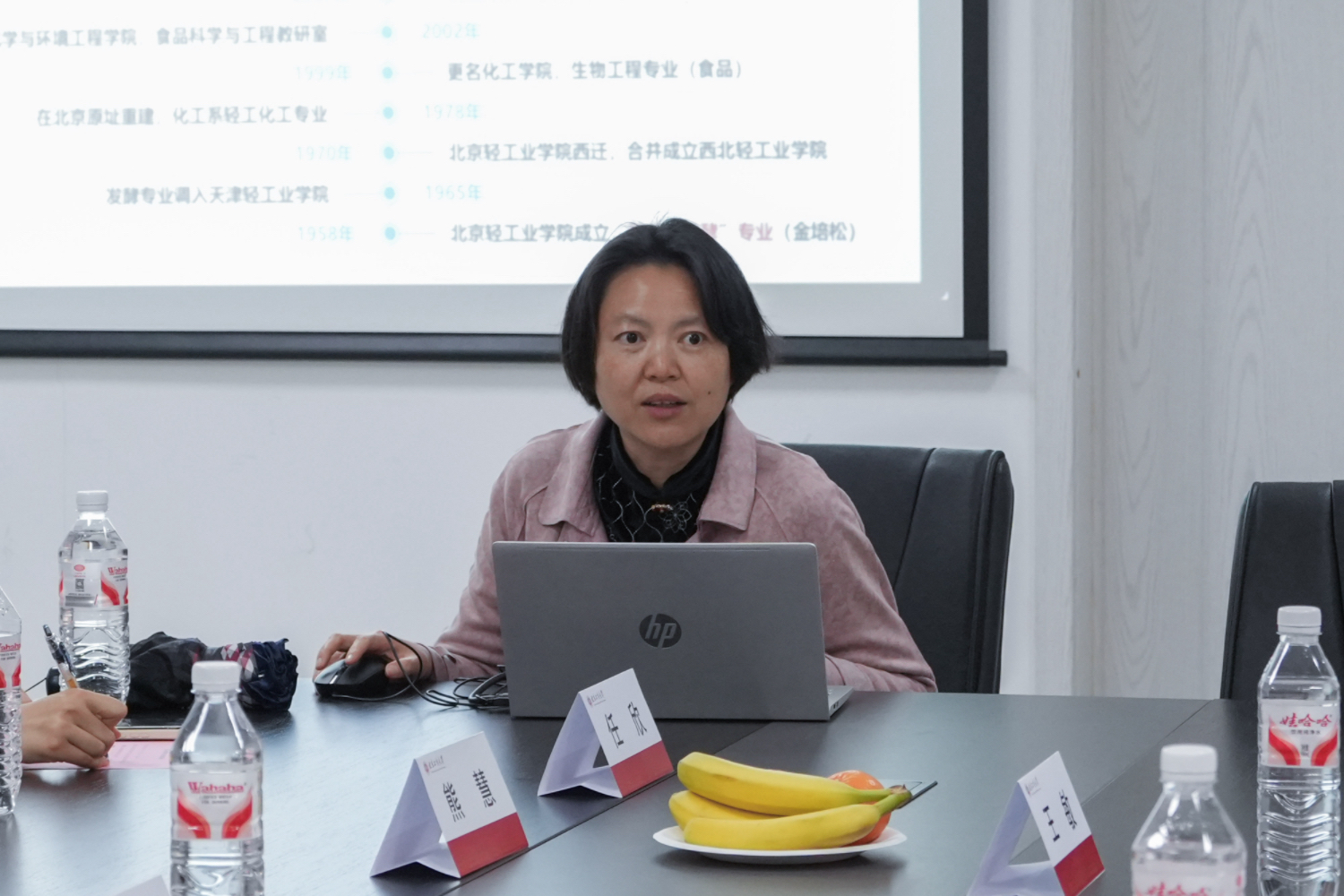 郑喜姣代表公司致辞,对怀柔区人力社保局和市场监督管理局积极带企入校表示欢迎和感谢,并希望能够进一步加深与怀柔区政府和企业的交流与合作,实现人才培养和服务首都地方发展的共赢。熊慧从员工概况、人才培养、科学研究、团队建设、教学提升、社会服务、毕业生去向等方面向来访单位介绍了公司的基本情况,希望今后与怀柔区政府建立更加密切的联系。