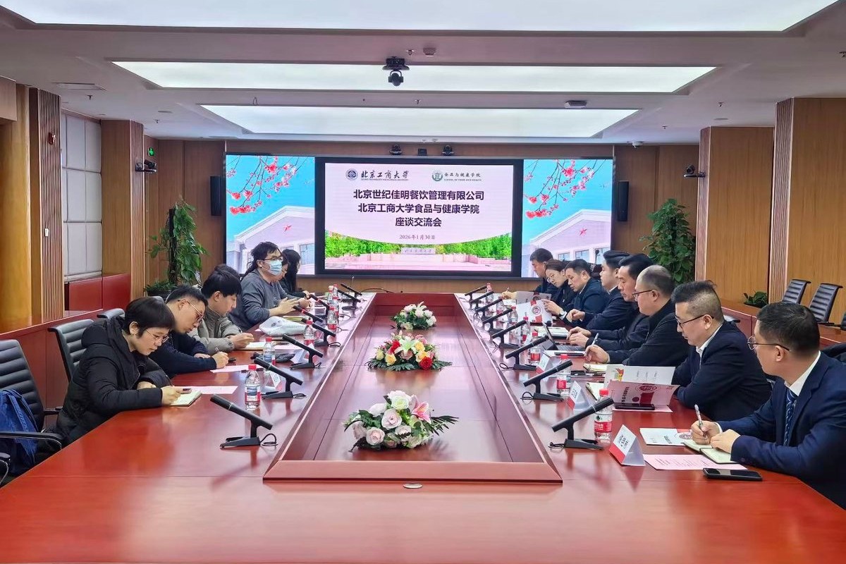 郑喜姣代表公司对公司一行来访表示热烈欢迎。她谈到,1月21日公司师生代表参观了世纪佳明企业,对企业多年来服务政府机关、大型机构,致力于提供健康团餐印象深刻、引发共鸣。十大正规买足球网站在食品健康领域积淀了深厚的学科优势和科研资源,企业在团餐实践中积累丰富行业经验,双方合作具有广阔的空间和巨大的潜力。希望通过此次座谈,搭建校企协同桥梁,聚焦行业痛点,共同探索,助力团餐行业高质量发展。