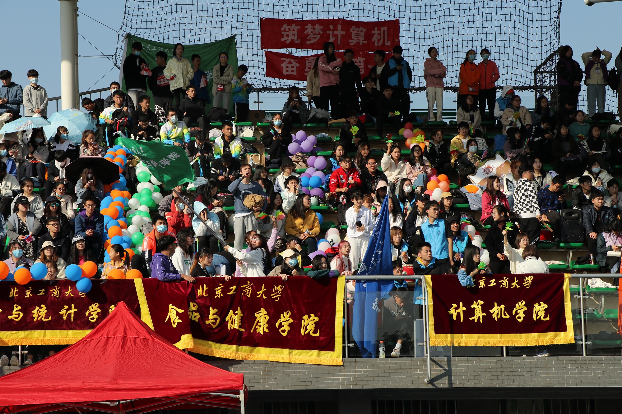 运动员们矫健的身姿是运动场最美的风景线,观众席上的食院啦啦队随着每一次的发令枪响声如浪涌,为每一位冲过终点线的队员喝彩连连。无论是在赛场上、观众席、领奖台,大家为集体荣誉竭尽全力的青春模样都令人心潮澎湃,充分展现了食院学子的青春风采!