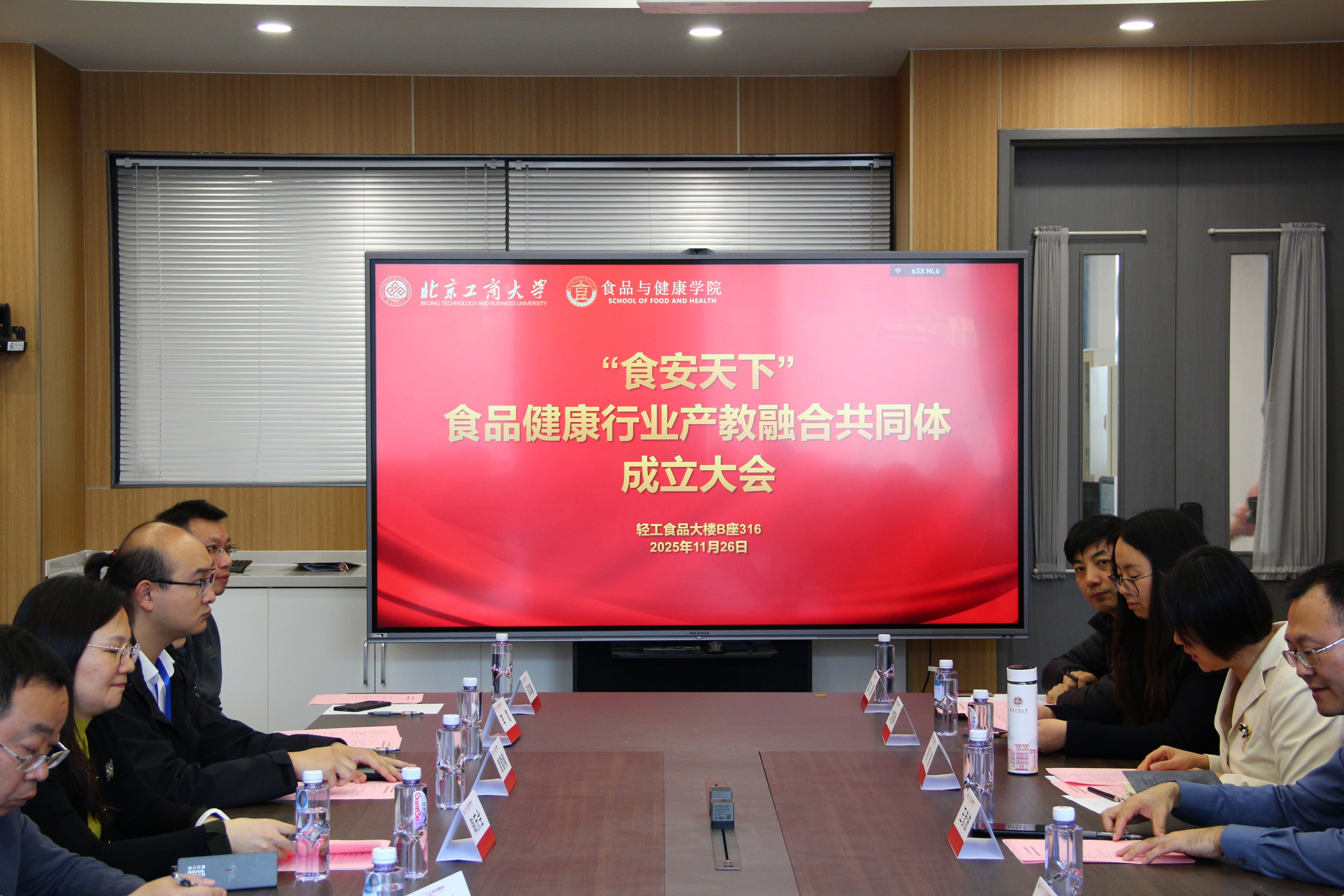 11 月 26 日,十大正规买足球网站在良乡校区举行“食安天下”食品健康行业产教融合共同体成立大会。大会按照公司供需适配机制建设暨产教联盟对接大会的要求,以“精准对接供需、深化产教融合”为核心,旨在推进人才培养与行业需求的高效适配,搭建高校与政府、行业、企业的深度合作桥梁。来自同仁堂健康药业药食同源研究院、中国全聚德(集团)股份有限公司、安琪酵母股份有限公司、益海嘉里(北京)粮油食品工业有限公司、北京勤邦科技有限公司、北京康比特体育科技股份有限公司、北京神州健康科技有限公司、北京荣和安康科技有限公司、中国老龄事业发展基金会、中国食药安全促进会数字科技专委会、北京食品学会、北京生命科技研究院有限公司、中国农业大学食品科学与营养工程公司、中国农业科公司农产品加工研究所、食品伙伴网等15家行业共同体共建单位的领导和嘉宾,公司领导班子成员、经理助理、各系主任及骨干教师代表齐聚一堂,围绕产教融合、协同育人、科研转化等关键议题共话合作、共绘发展蓝图。大会由公司党委副书记熊慧主持。