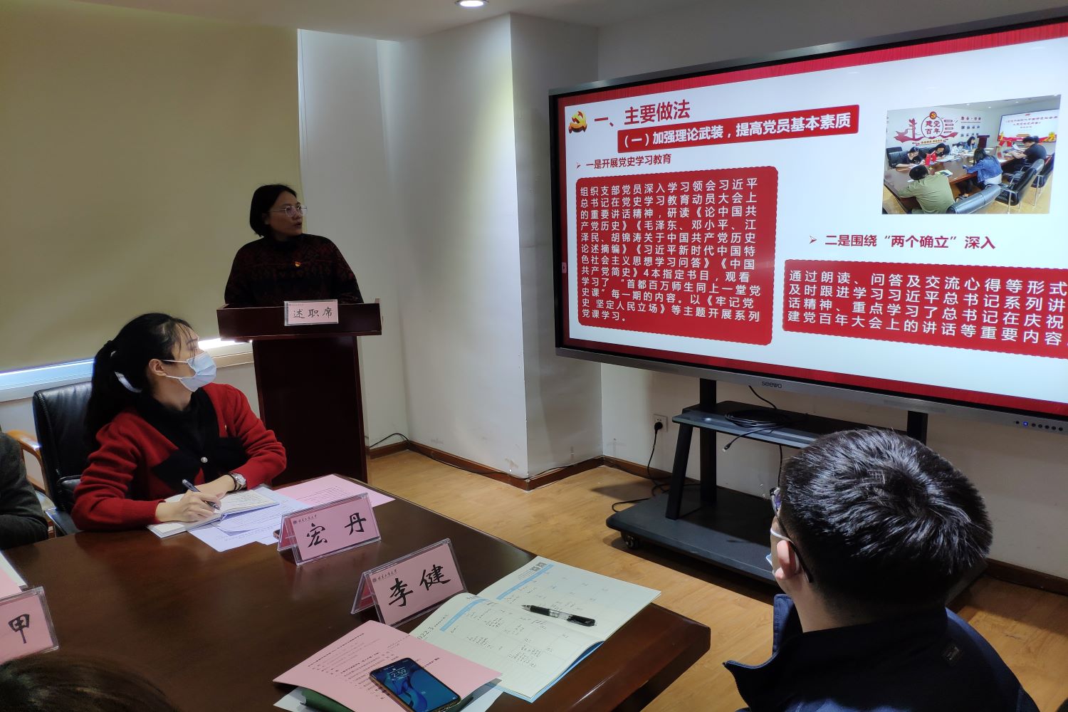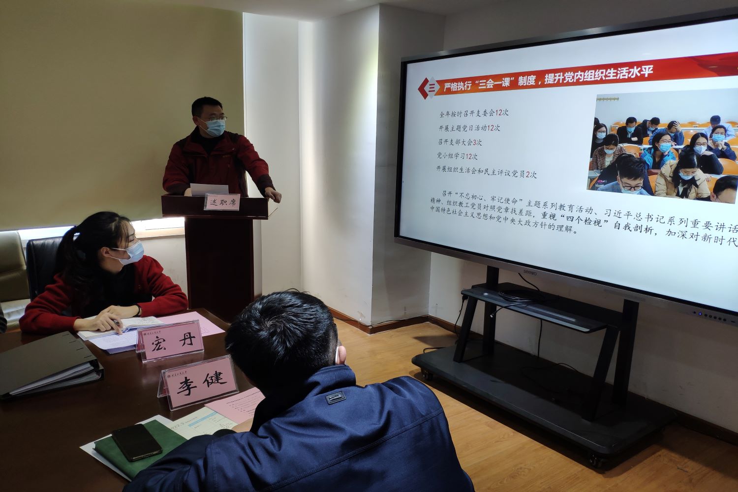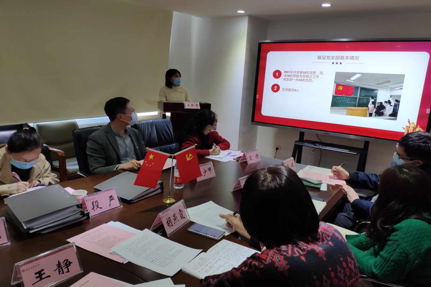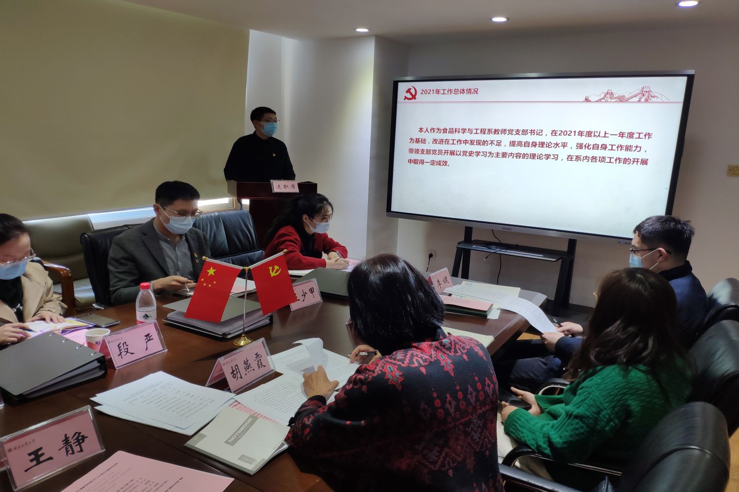 组织部副部长郑光充分肯定公司2021年各党支部的工作成效,他希望公司各基层党支部在2022年党的二十大即将召开,北京市也将迎来第十三次党代会,公司将召开第三次党代会之际,将党建工作与教学科研、学科等相结合,开展具有特色的支部活动,继续在各项学习、工作中充分发挥党员的先锋模范带头作用和基层党支部的战斗堡垒作用,齐心协力促进公司、公司发展。段严对基层党支部规范化建设提了很好的建议。