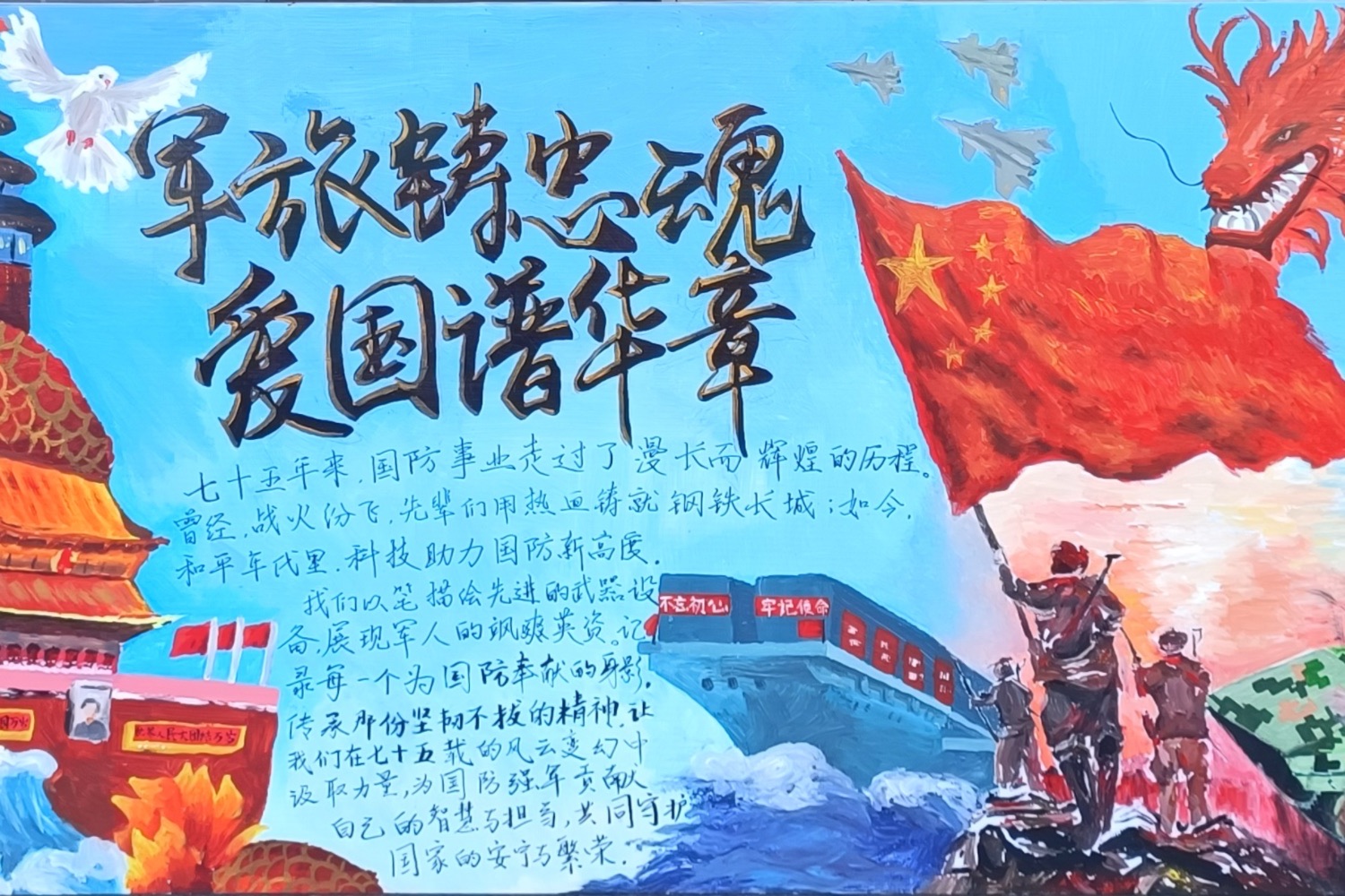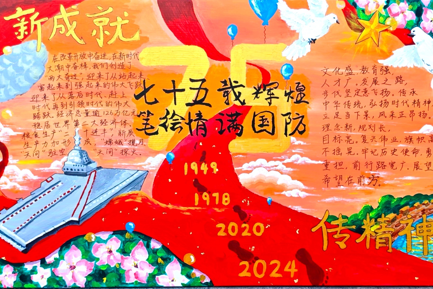 在板报评比活动中,同学们以笔为舟,以梦为帆,驰骋于想象的海洋,将对祖国的满腔热忱与美好祝愿,巧妙融入色彩斑斓、主题鲜明的板报之中。从板报的布局设计,到色彩的搭配运用,再到图案的生动描绘,每一个细节都凝聚了同学们的心血与智慧。