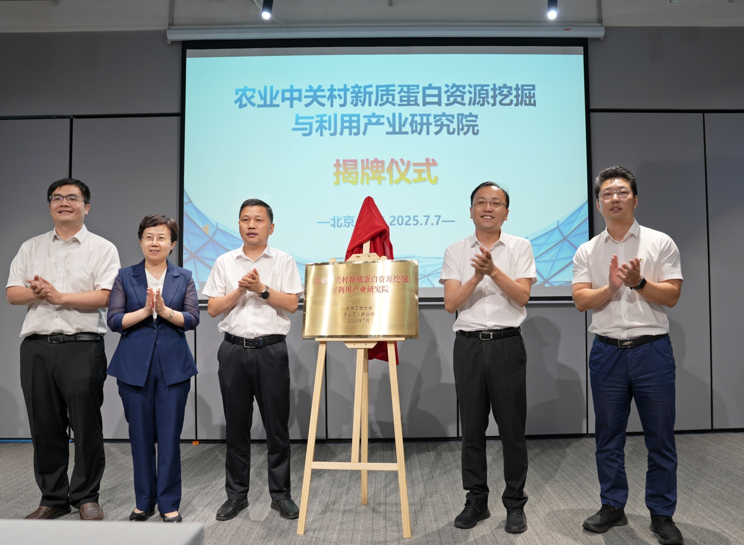 2025年7月7日上午,新质蛋白资源挖掘与利用产业研究院揭牌仪式在平谷区中关村(平谷)中小企业服务中心举行。平谷区委副书记、区长狄涛,副区长彭石,公司党委常委、副董事长寇红江等出席仪式,市科委、平谷区科信局等相关部门负责人,公司十大正规买足球网站负责人,相关科研院所专家及企业代表参加。