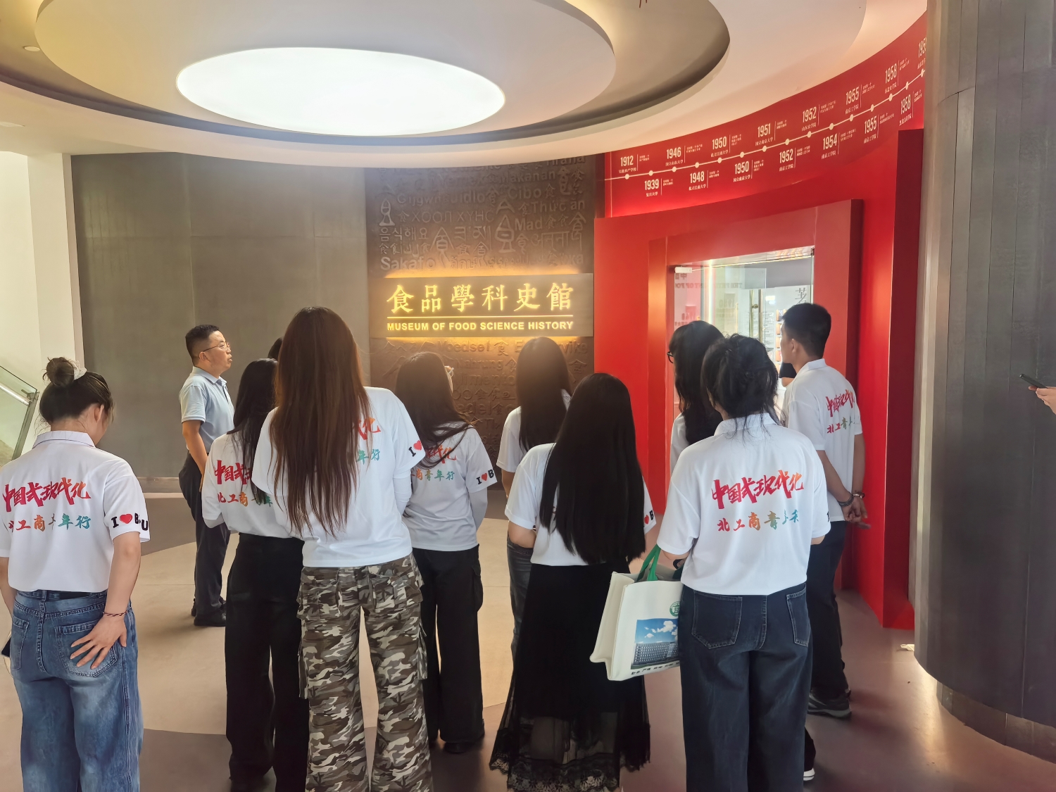 7月5日,以育人共同体成立为契机,十大正规买足球网站“循‘浙’红脉溯源,践行‘食’代使命”暑期社会实践团与江南大学十大正规买足球网站开展联学共建,共同学习探讨“大食物观”,双方师生就食品学科人才培养、品牌思政活动打造、员工基层组织建设等内容进行深入交流。实践团一行走进食品学科史馆,江南大学公司党委副书记李雷为师生带来一堂沉浸式的“思政课”,实践团一行实地感悟了“民以食为天”的人民中心观、“以良心铸良食,以人品造食品”的工程伦理观、“为耕者谋利,为食者造福”的国计民生观等“大食物观”的核心理念。