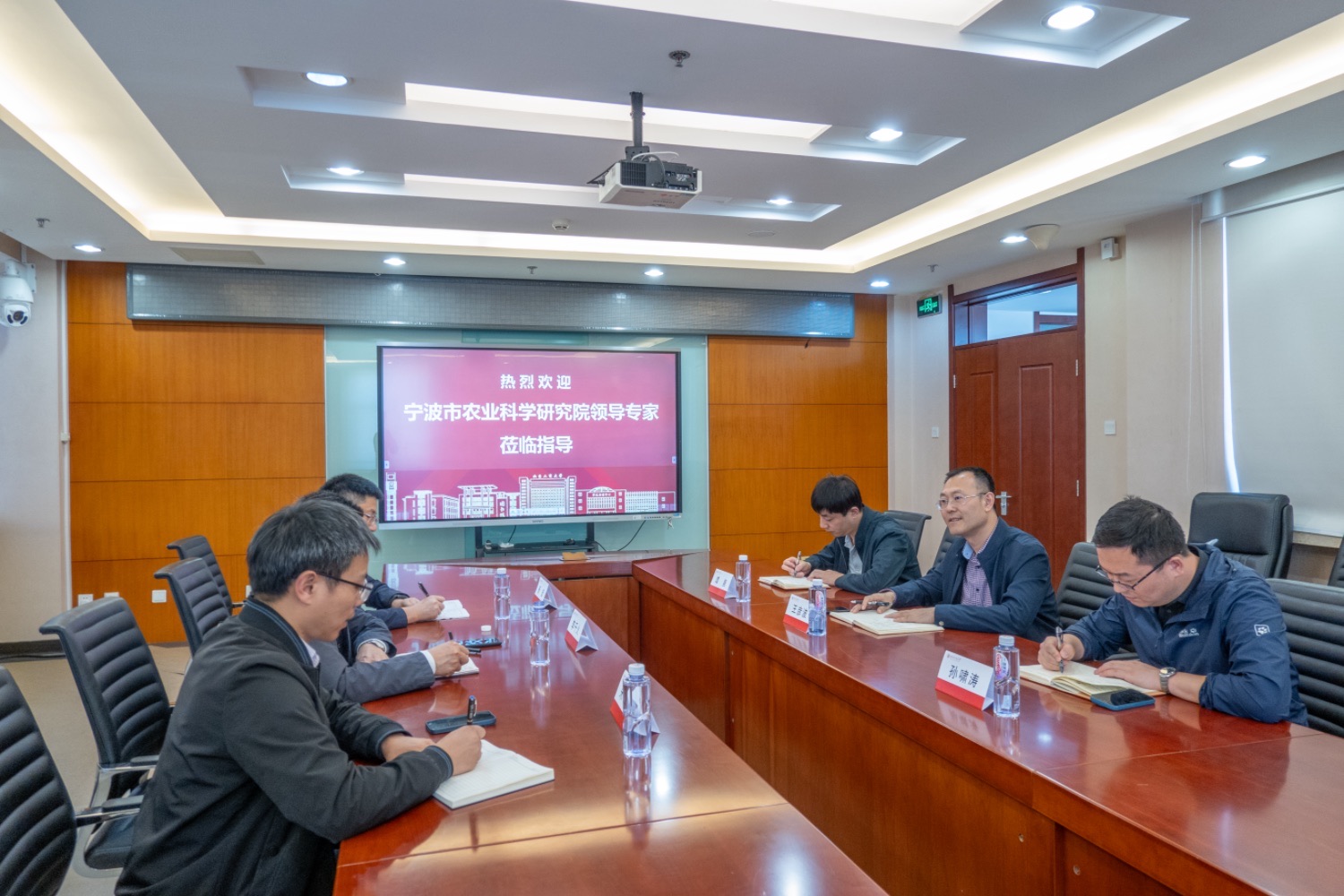 4月22日下午,宁波市农业科学研究公司党委书记李千火、副经理杨挺、农产品加工研究所所长朱霖一行到访公司交流座谈,公司经理王彦波、副经理孙啸涛及经理助理谭晨在阜成路校区热情接待了来访同行。
