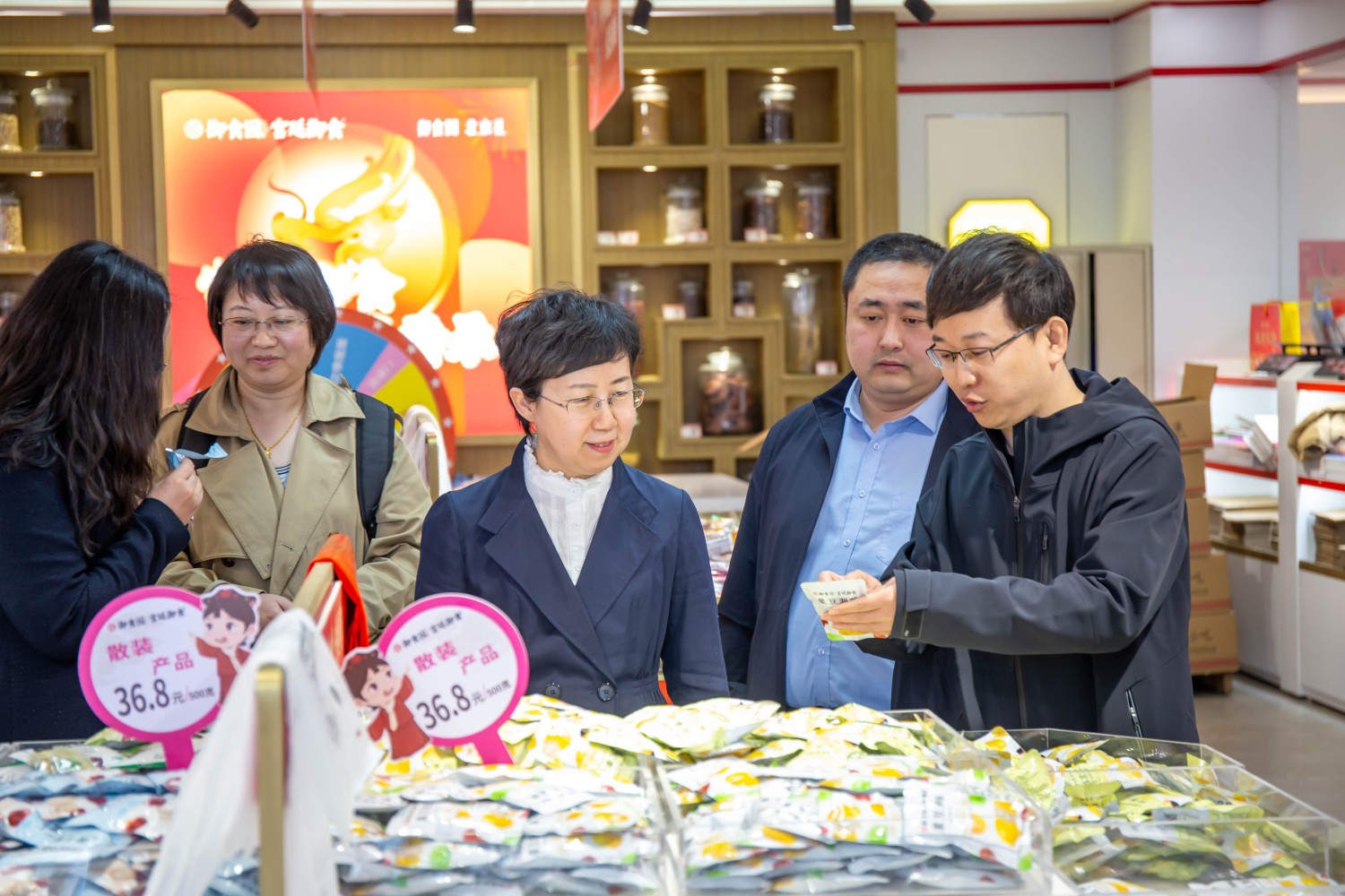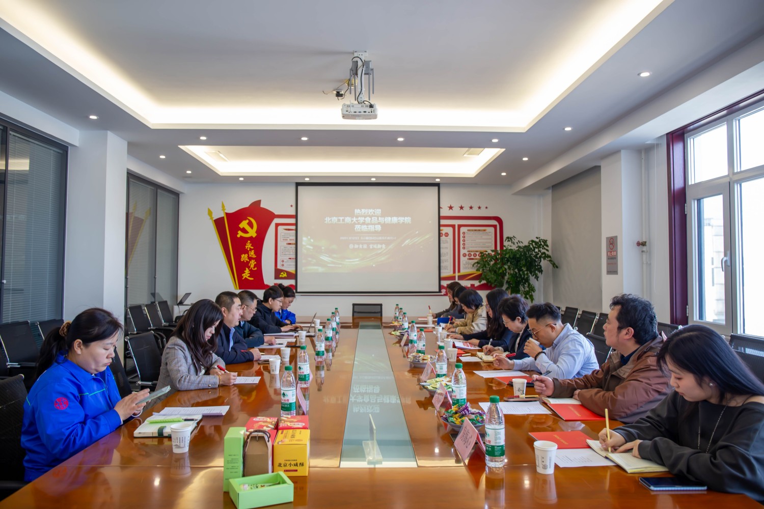 北京御食园食品有限公司总经理陈诚、人力行政总监刘瑞民、财务总监魏小灵、市场产品总监杨贺强等人热情接待了公司一行。在御食园产品展厅,公司负责人详细介绍了产品系列,从传统小吃到上市新品,从自有专利到跨界融合,每一款产品都承载着御食园对京味文化和产品创新的不懈追求。