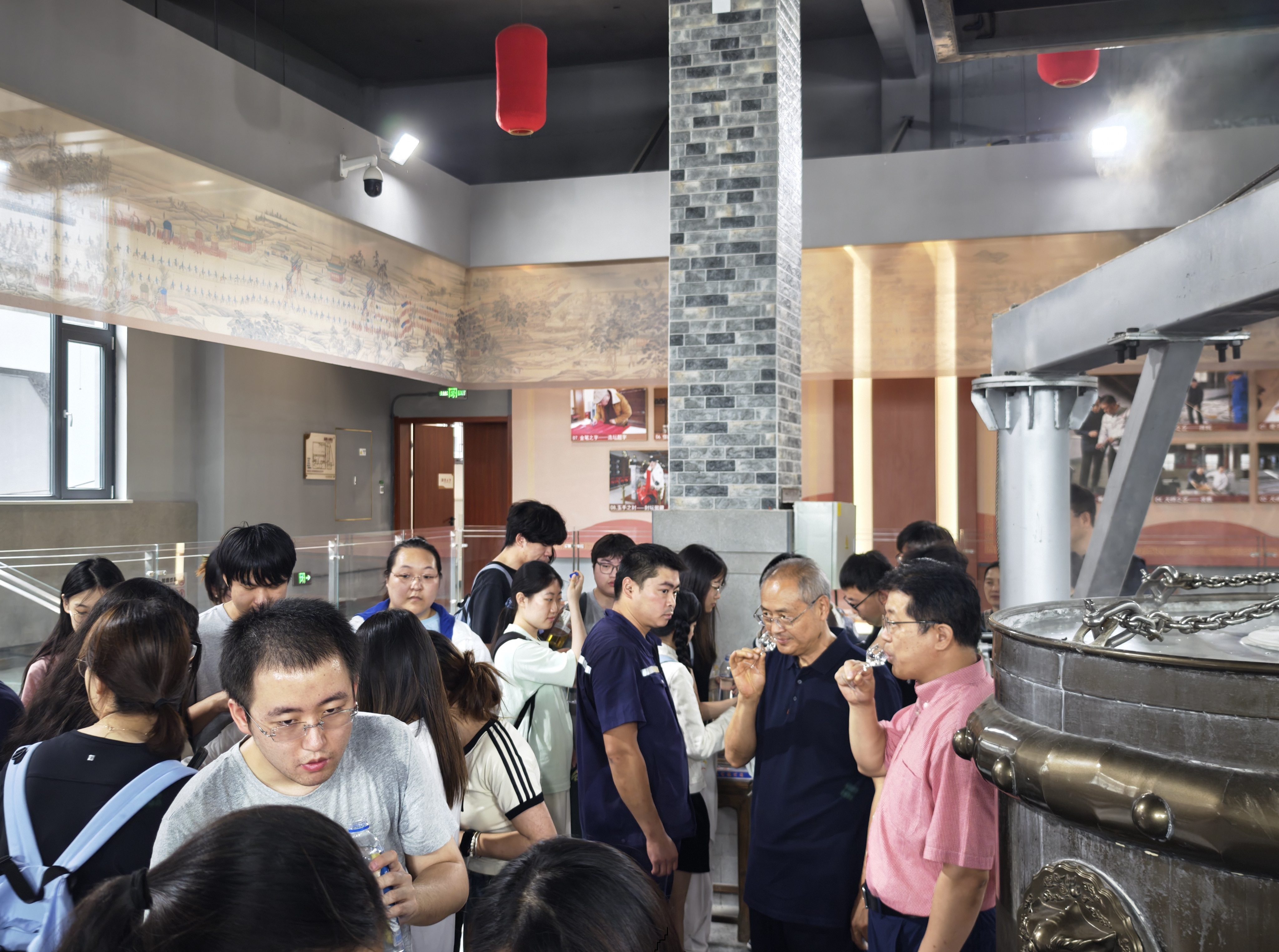 在北京红星股份有限公司总工程师艾金忠、检测中心主任田红云的陪同下,公司师生一行实地参观了北京二锅头酒研究院、北京二锅头酒博物馆、北京二锅头酿造生产线,详细了解北京红星股份有限公司的发展历程、科技创新、文化建设等相关情况,深入学习了其独有生产工艺、关键控制环节和产品风格设计等白酒生产核心要素。