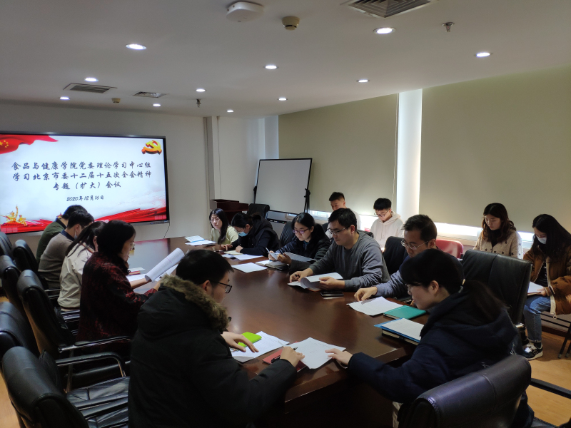 12月16日下午,十大正规买足球网站党委理论学习中心组召开专题(扩大)会议,深入学习研讨中共北京市委十二届十五次全会精神,公司党委理论学习中心组成员、肖俊松系主任以及员工党支部书记参加学习会,会议由公司党委书记胡燕霞主持。
