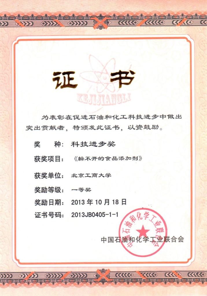 中国石油与化学工业联合会2013年度科技进步一等奖